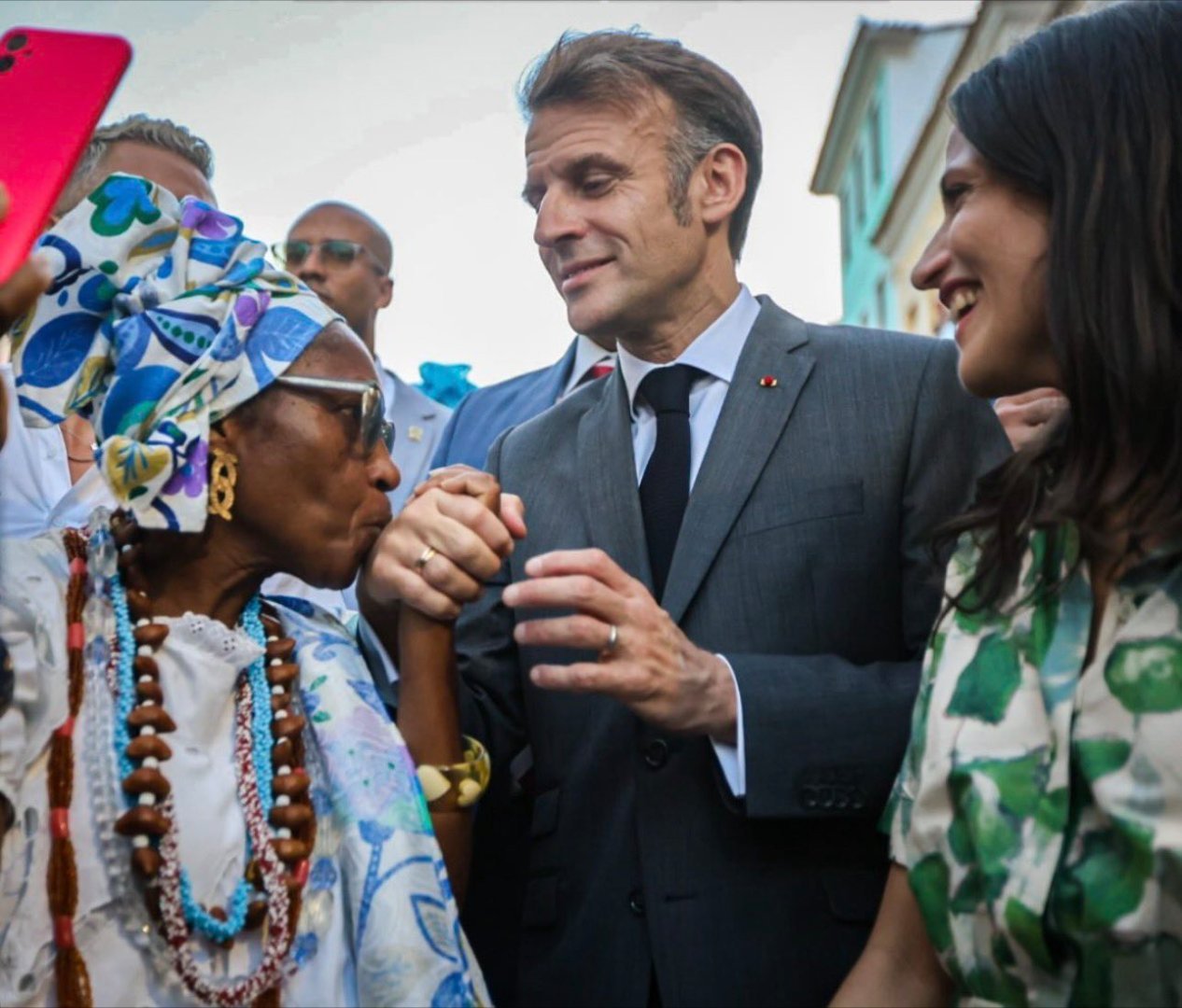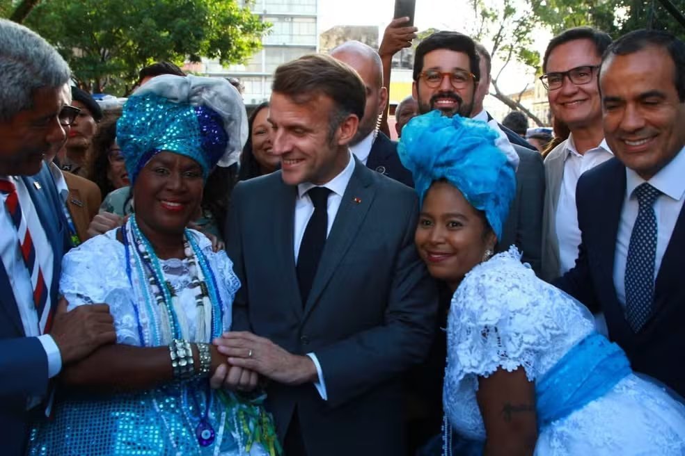 马克龙在巴西街头与民众狂欢法国总统马克龙在巴西萨尔瓦多街头,参加法巴文化节,与当地民众拥抱合影狂欢。(三)
