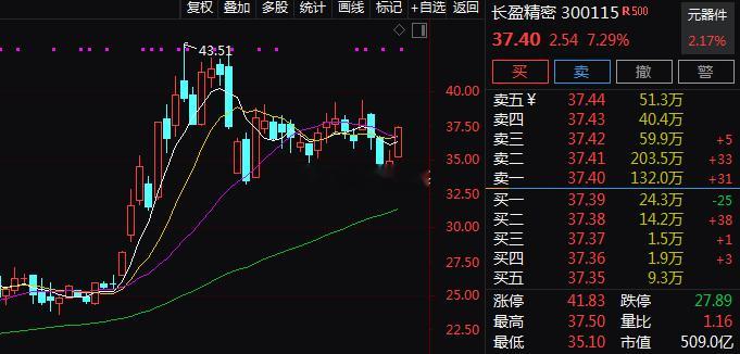 11.6日提示$长盈精密 sz300115$ 午盘持续发力,最高大涨7%!