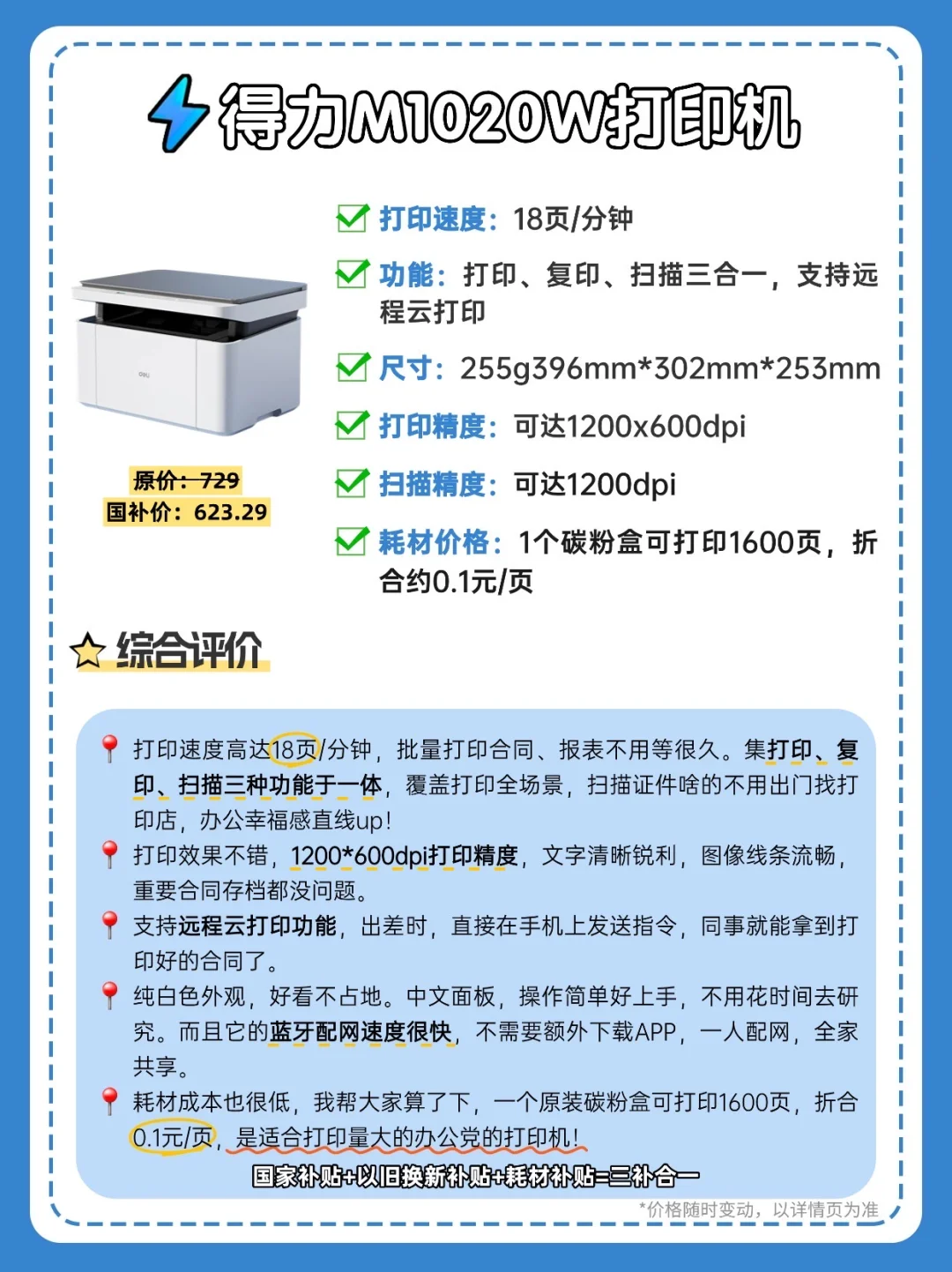 这款打印机目前可以享受国家补贴+以旧换新补贴+耗材补贴,三补合一。