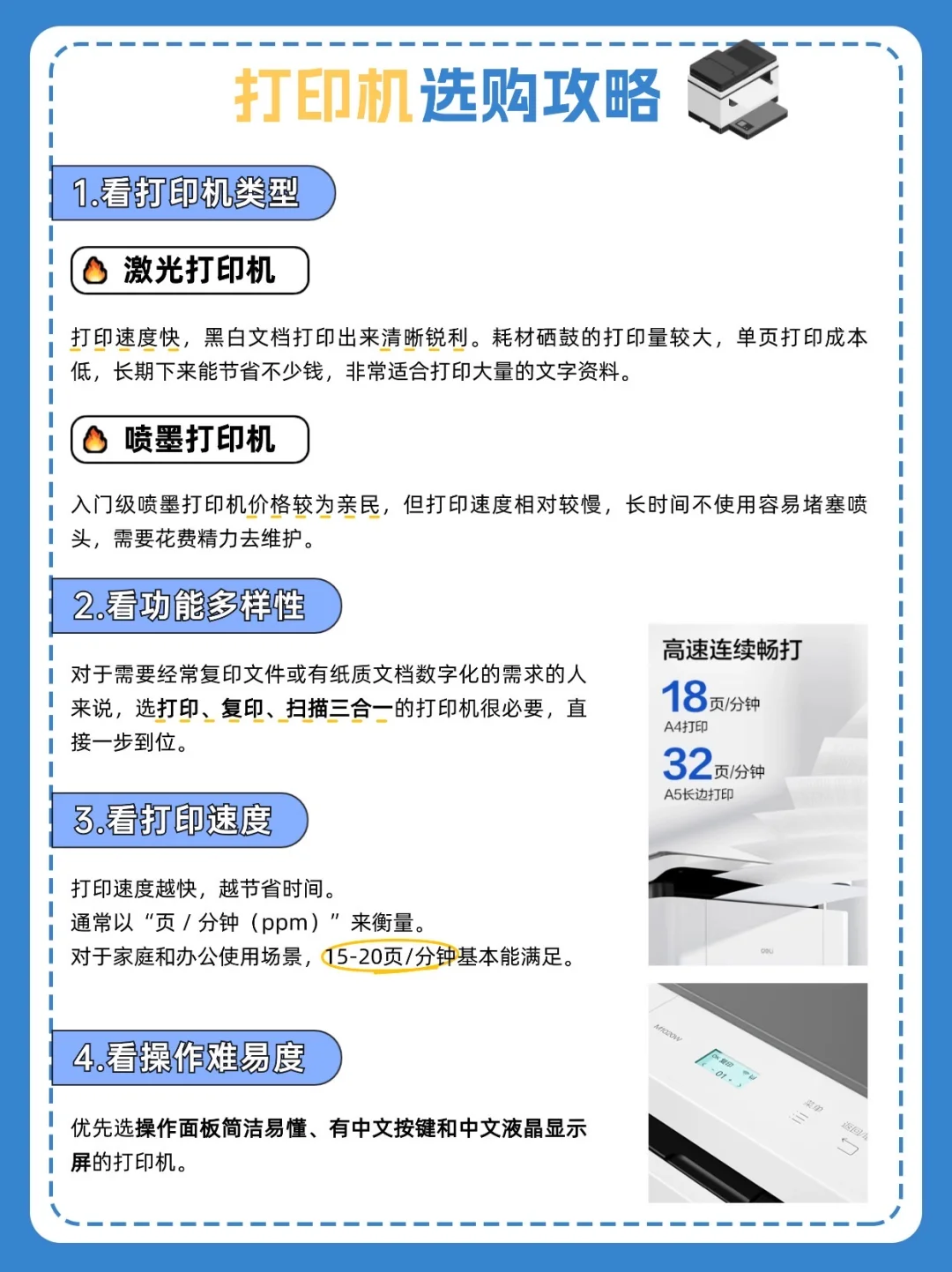 买打印机千万别踩这些坑,我整理了一份打印机选购超实用攻略,按照这个选,让你更省心。
