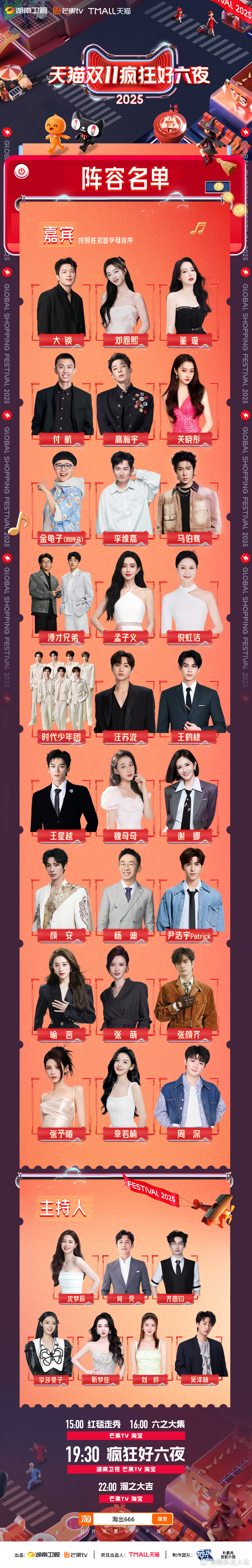 何炅谢娜领衔主持天团,时代少年团、王鹤棣、周深强势加盟,双11疯狂好六夜全阵容来了 11.10锁定狂欢!