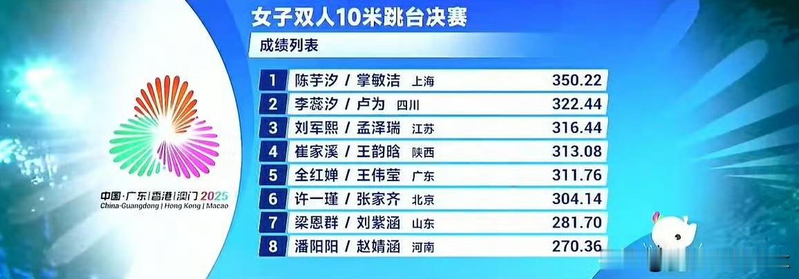 全红婵结束了全运会之旅,一个金牌一个第五完美收官 女子双人十米台,陈芋汐和搭档夺冠,全红婵和搭档得了第五名,虽然成绩不太理想,但是全红婵身体都是伤,也是有影响的 全红婵妈妈都说了,女儿身体最重要,希望全红婵好好养好身体,已经再战,没关系,全红婵也才十八岁,可以享受大学生活了
