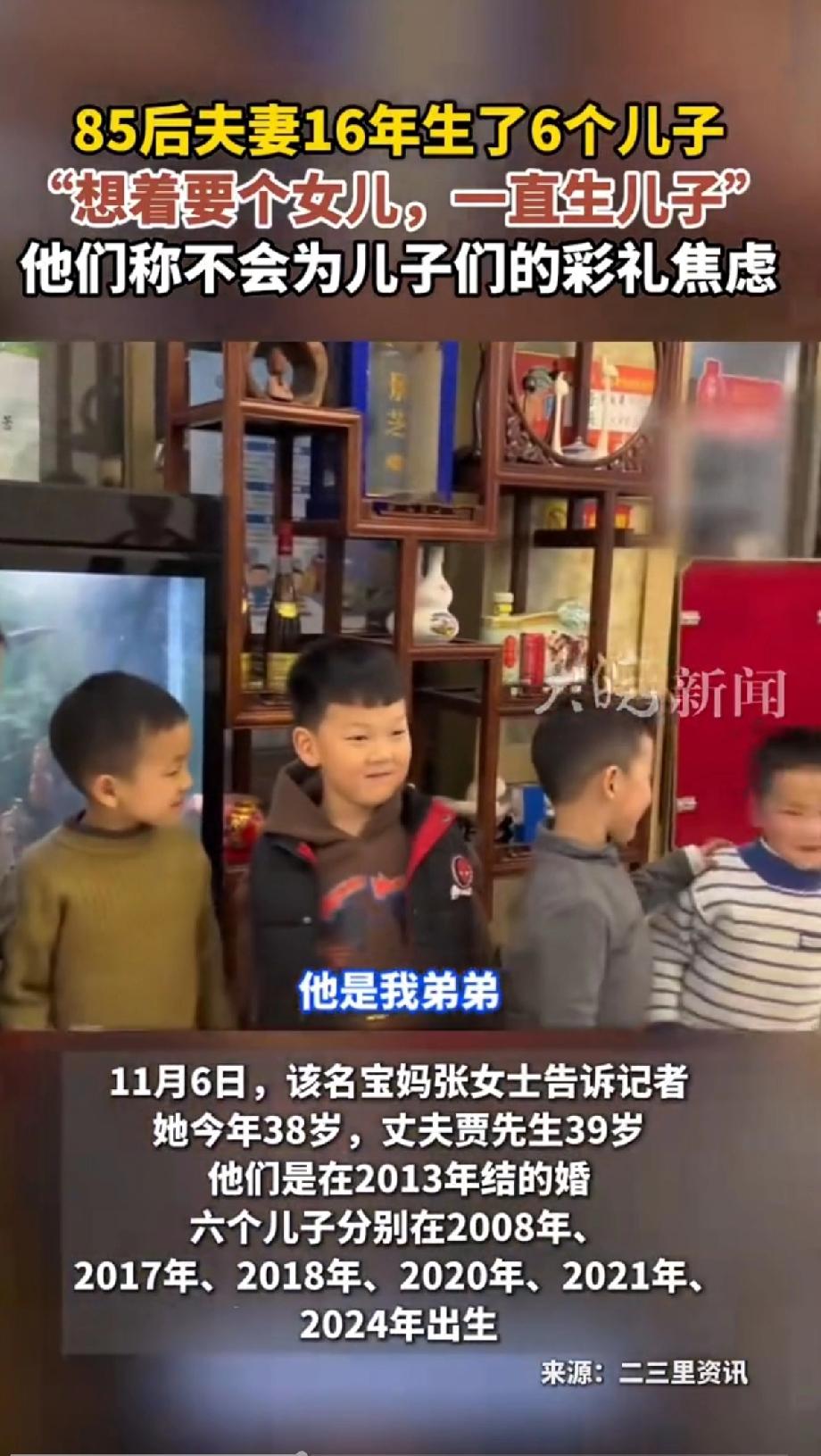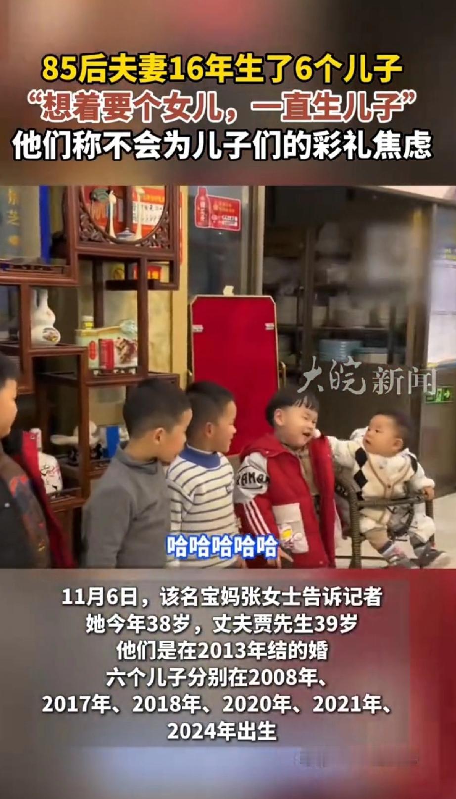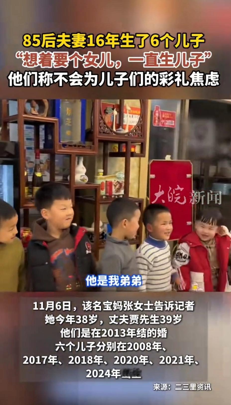 85后夫妻16年生了6个儿子“想要个女儿,一直生儿子”这毅力,真让人佩服得五体