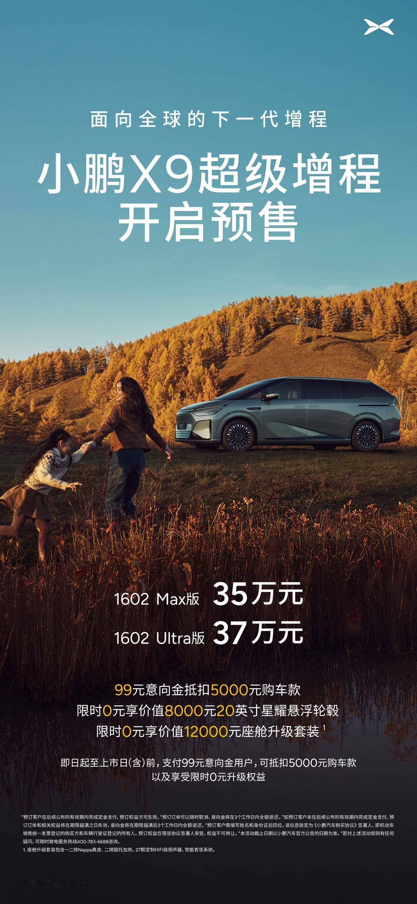 小鹏X9超级增程预售价35万起小鹏确实很有实力,X9预售价也是相当有诚意。毕竟