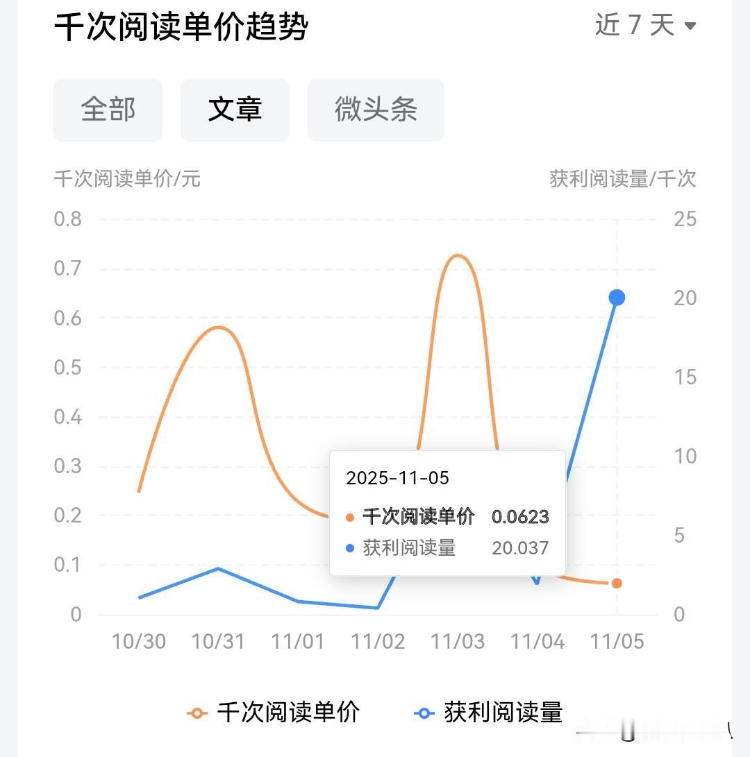 [不看]简直不敢相信! [发]20000阅读量,1.25元的收益! [叹气]最开始以为看错了,没想到这竟然是真的! 我也算是头条的老用户了,持续写文章一年多了,今天这个收益简直刷新了我的三观,0.06的千次阅读单价,还有比我这个更低的吗?! 是我选题不对吗?我一直在写足球类的文章,自认为还比较专业,每天熬夜看球写文章,真的不值!!!