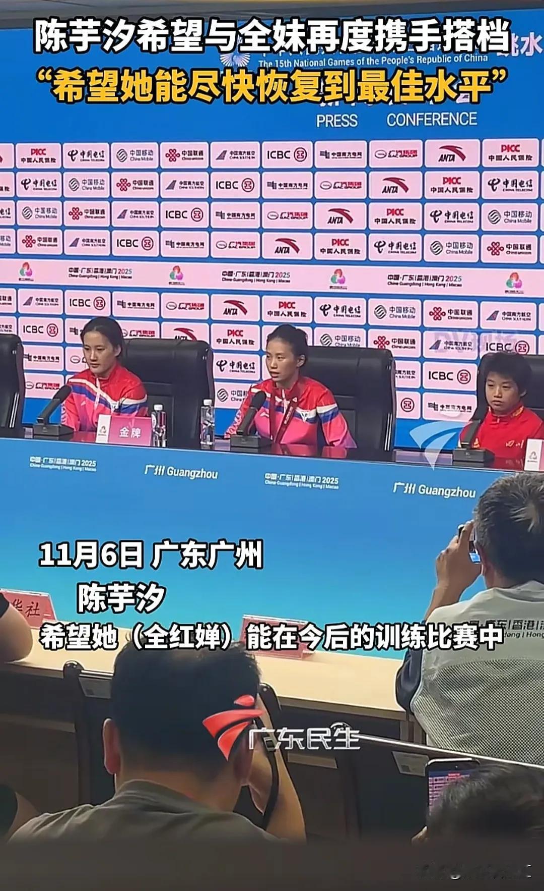 陈芋汐面对媒体谈到全红婵,她表情严肃神情紧张,生怕说错一句话引来麻烦,平时她私下叫全红婵都是叫‘小红’,小红是全红婵的小名。 昨晚在记者的追问下她谈到:她和全红婵曾经是队友是搭档,俩个人的关系处的非常好,她希望全红婵伤势尽快恢复到最好的状态,早日回到比赛场发挥出最好的水平,她和全红婵都希望能再次携手到国际比赛场为国争光。 陈芋汐团体赛输的那晚只睡四个小时就到训练场,她的自律和刻苦训练使她一次次站在最高领奖台上。 希望她早日和小红搭档再次夺冠!