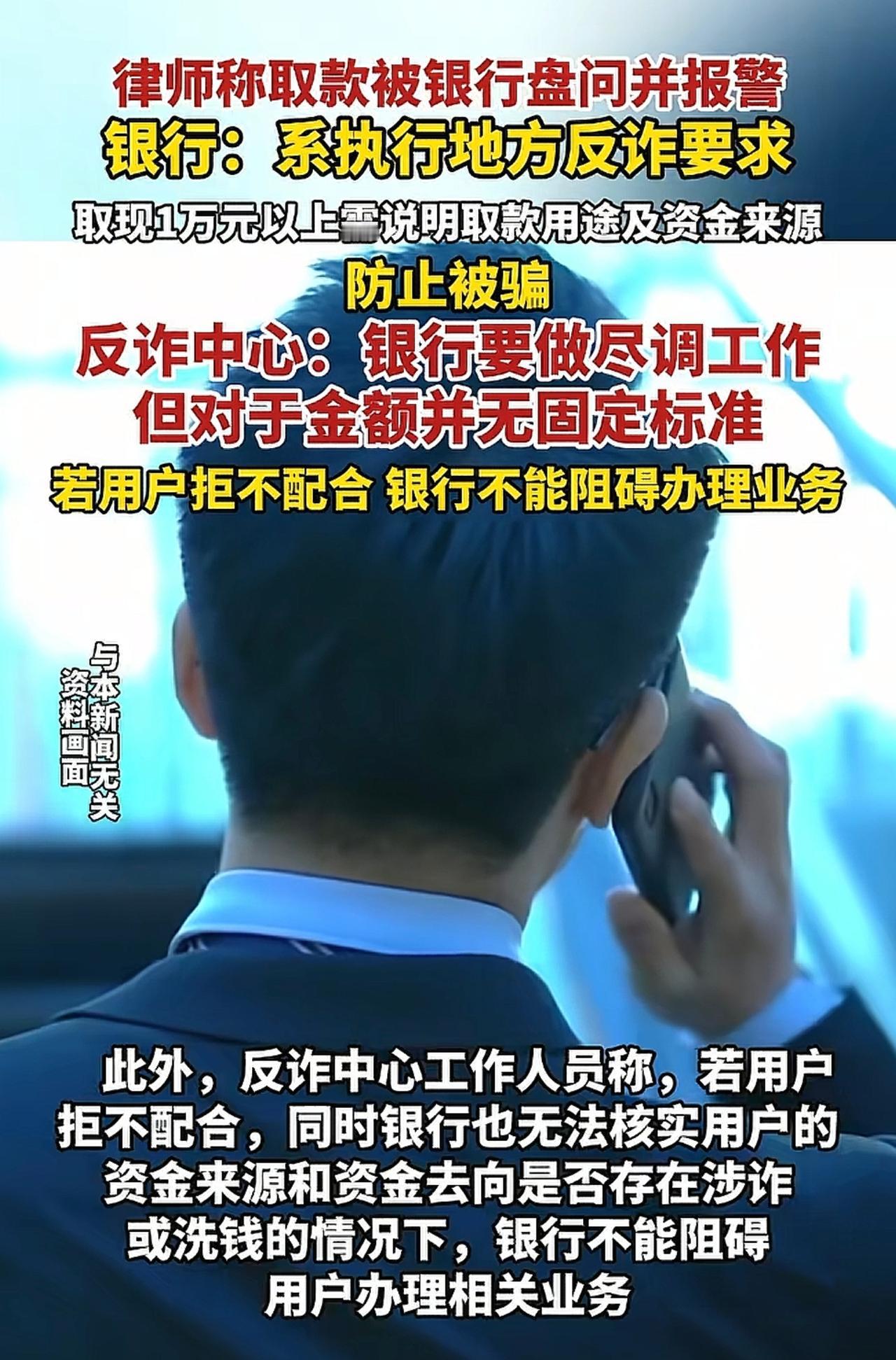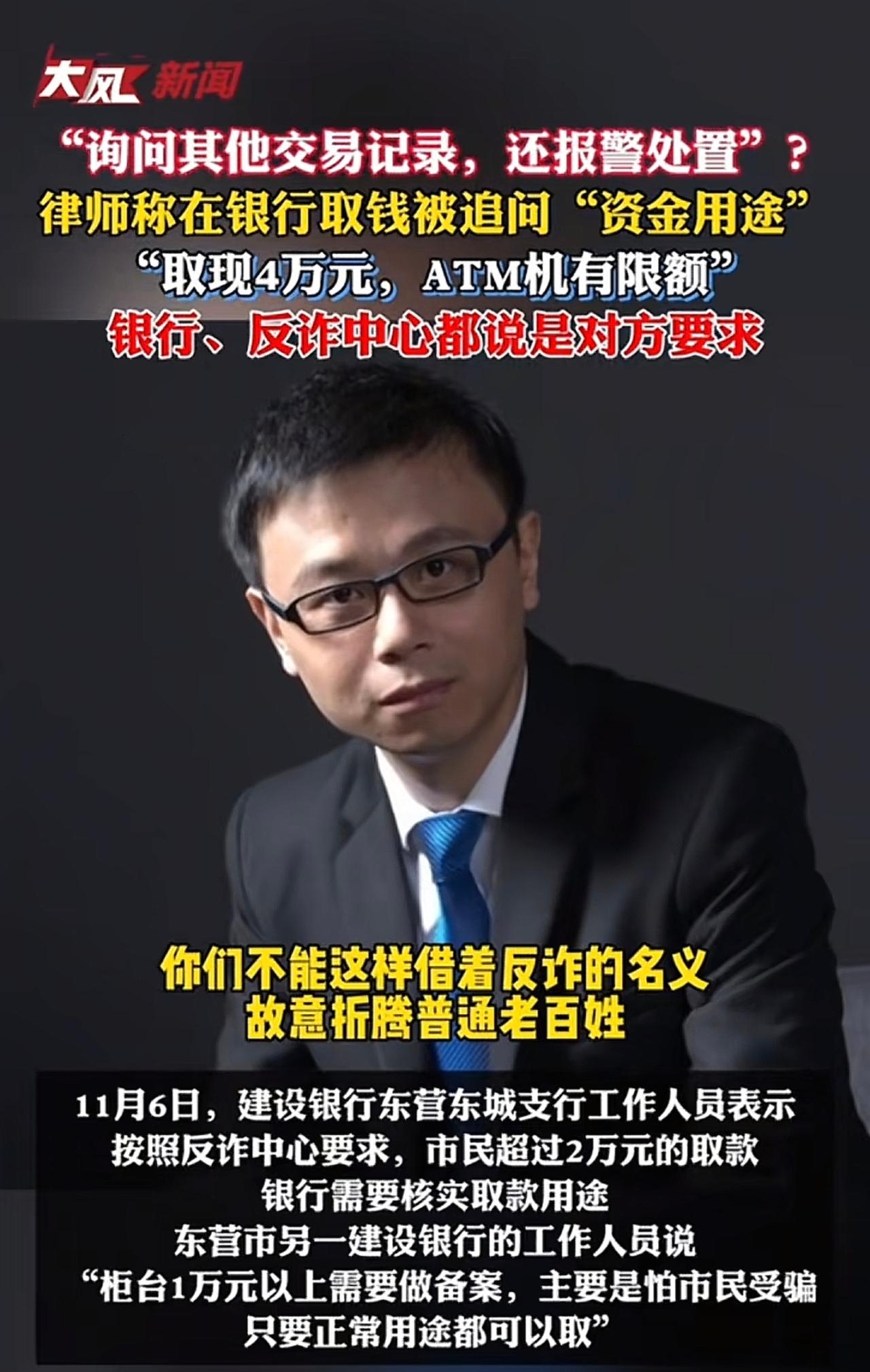 存钱不闻不问,取钱问东问西,拿着反诈中心的条例,曲解上级要求。反诈目的是发现取款异常,纠正老百姓受骗风险,现在成为资金盘查,更有甚者要求查看聊天记录,侵犯个人隐私。山东东营这家建设银行终于惹怒了一位律师,出于职业的敏感性,他认为柜员的询问超出其职业范围,他说的一句话比较真实,“银行不能借着反诈的名义,折腾老百姓”,虽然银行也是履行职责,但到底反诈的标准是什么,金额范围是多少,柜员是否统一培训,哪些该问哪些不该问是否清晰,千万别好心做坏事。取钱被查问 反诈报案电话 存款诈骗 反诈限额