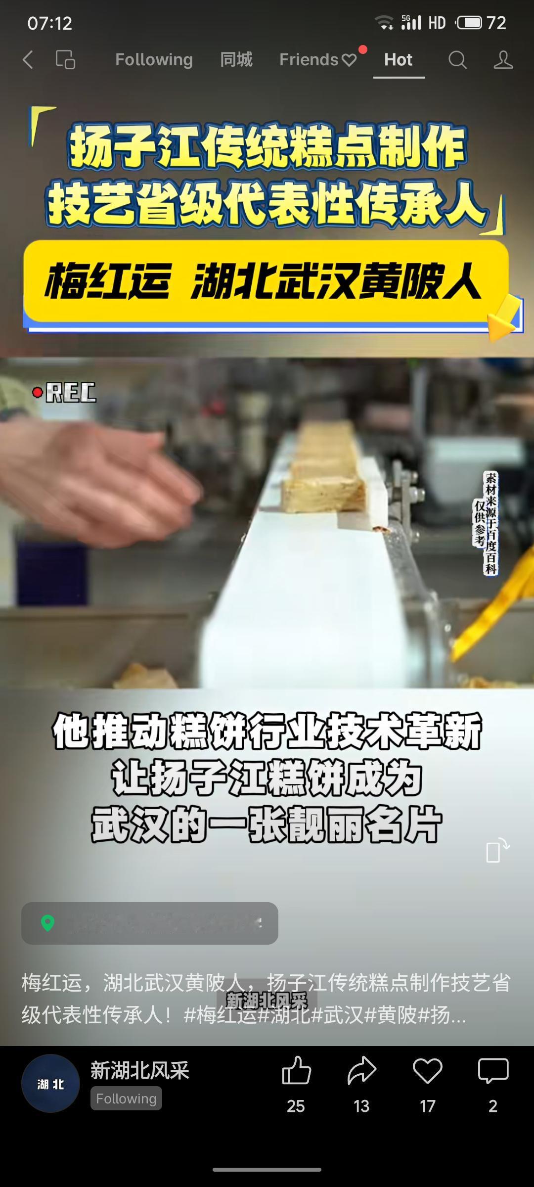 梅红运,湖北武汉黄陂人,扬子江传统糕点制作技艺省级代表性传承人。现任武汉扬子江乳业食品有限公司董事长,他推动糕饼行业技术革新,其代表作品小法饼、荆楚汉饼等让扬子江糕饼成为武汉的靓丽名片。