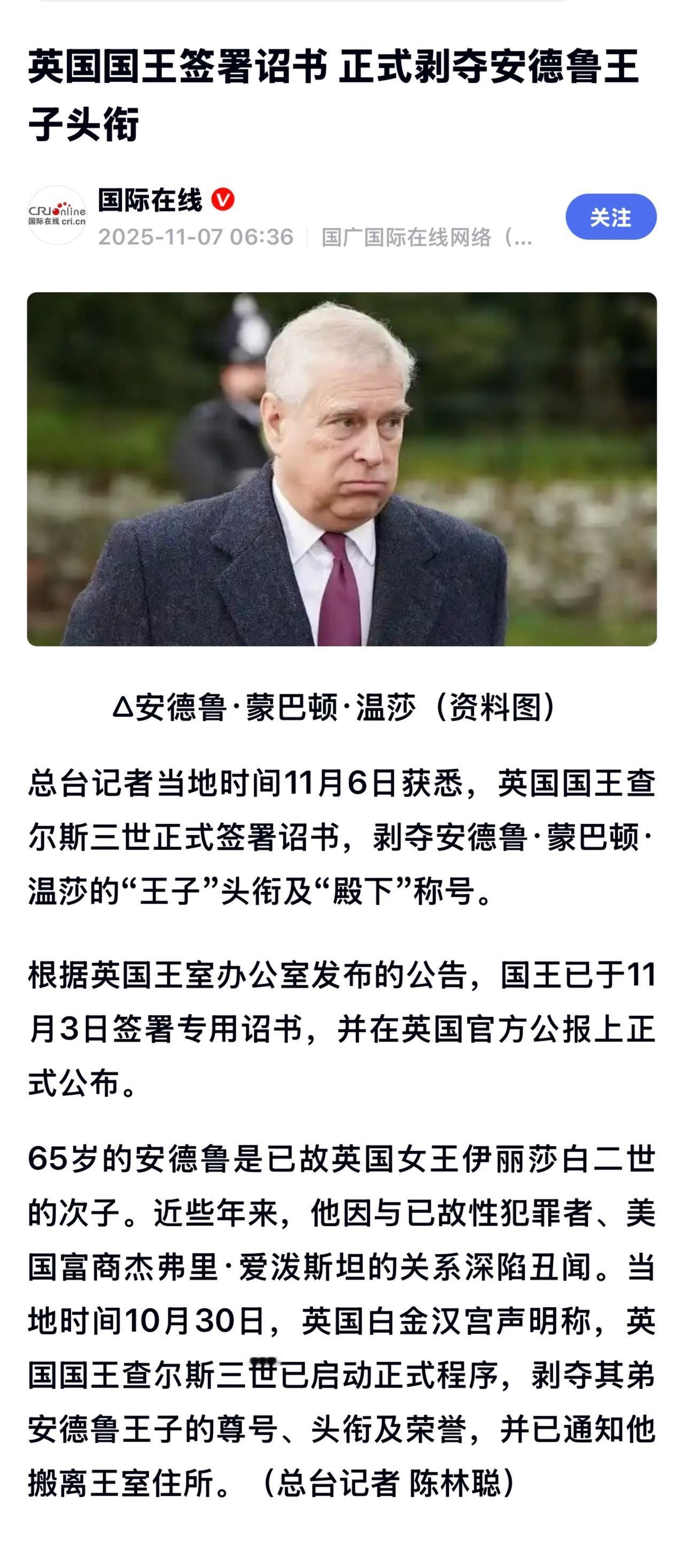 查尔斯三世“大义灭亲”,将涉丑闻的亲弟弟安德鲁王子头衔尽削并扫地出门。