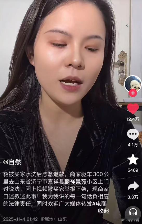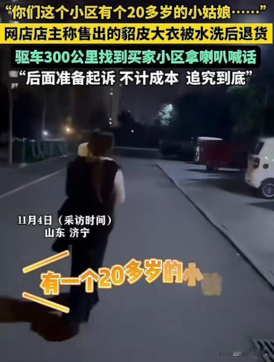 貂皮大衣退货风波:宝妈水洗后退货遭曝光社死,商家报警后意外走红 网购衣服不合适退货本是常理,但前提是商品保持原样。可近日一位宝妈的操作,却引发了全网热议。 该宝妈在网店购买了一件1888元的貂皮大衣,收到货后不久便申请退货。商家在监控下检查退货时,发现貂皮大衣经水洗后变得嘎嘣硬,已完全损坏,于是通过平台拒绝退款。但平台最终偏向买家,为宝妈办理了退款。 商家对此十分气愤,认为是买家自身水洗导致衣服报废,不应由自己承担损失,随即选择报警。但警方表示此事属于经济纠纷,只能电话劝说,无法强制处理。令人意外的是,宝妈以在家带娃为由,拒绝见面协商,也不承认水洗事实。 为讨回公道,商家驱车300公里赶到宝妈所在小区,通过喇叭公开喊话,曝光其电话号码,并悬赏1000元征集宝妈住址,希望对方出面对质,可宝妈始终拒不露面。随后商家将事件经过拍成视频发到网上,却遭到投诉下架。 没想到视频下架后,事件反而引发网友愤怒,各大媒体纷纷转发报道。很快,宝妈姓吕、在家带娃的身份及所在小区被曝光,业主群炸开锅,宝妈陷入“社死”境地。 商家后续回应称,目前已启动司法程序,绝不容忍此类恶意退货行为。而令人意外的是,众多网友被商家的维权态度打动,纷纷表示想要购买其店铺商品,商家可谓“因祸得福”。