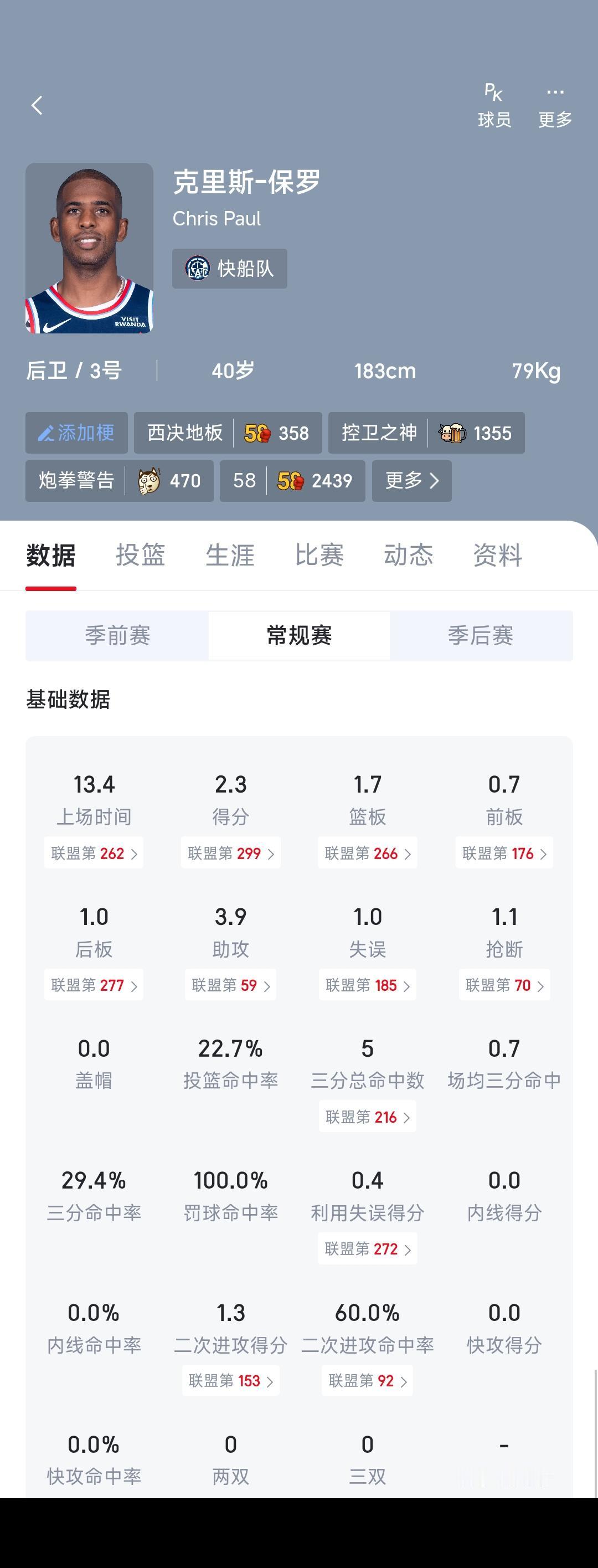 40岁的保罗应该要退役了,本赛季没有一场首发,场均2.3分3助攻。 年纪大了,还去快船这个队,上赛季在马刺82场比赛首发呢,现在一次首发都没。 真不应该离开文班亚马,本来辅佐超级巨星也有人称赞,现在是真的没了。 他离开,詹姆斯就是最老球员。[大金牙]