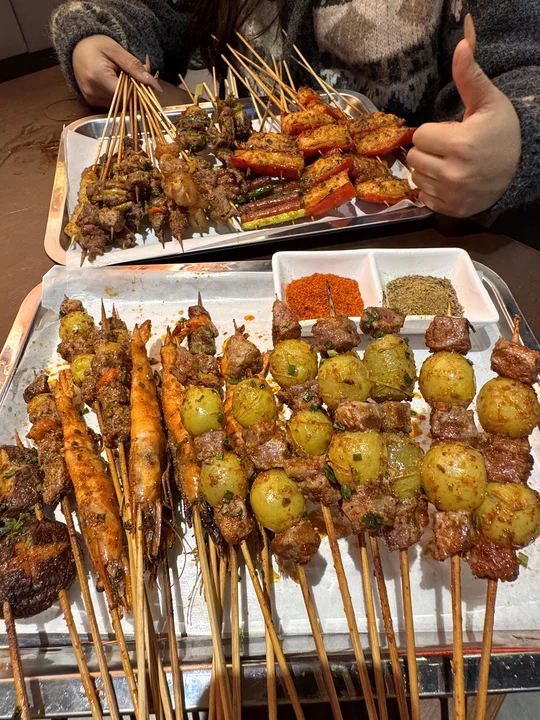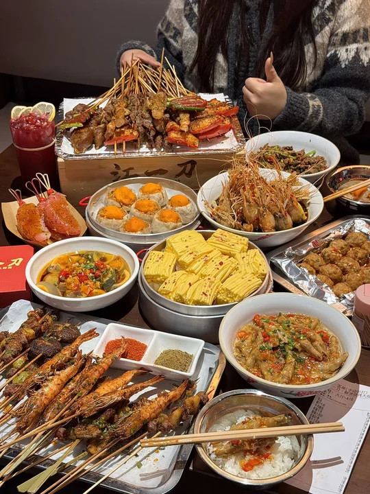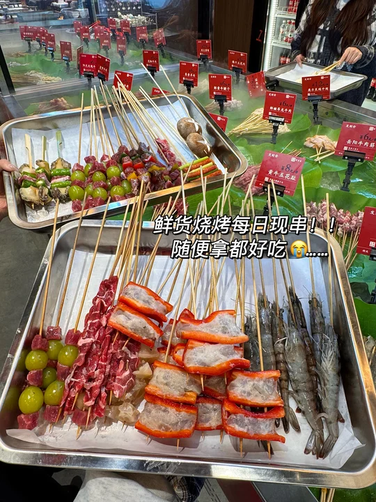 就在长寿路地铁站!!和朋友5天吃了4回…真心平价好吃! 叫:江一刀)附近本地人都夸的鲜货烧烤,闭眼盲点都不会踩雷!小炒也很有烟火气!我愿称之为烧烤届的神! 第一次吃蛋黄金丝卷,现蒸软糯里面还有夹心!!好好吃啊🤤芥末罗氏虾,开了背每只都饱满Q 弹 我一个人可以吃完一整份!还有咸蛋黄烧麦、纸包排骨、固体杨枝甘露、桂花冰糖柚子…好多别家吃不到!! 唯一的缺点大概就是饭点需要排队!想吃的建议早点来。。