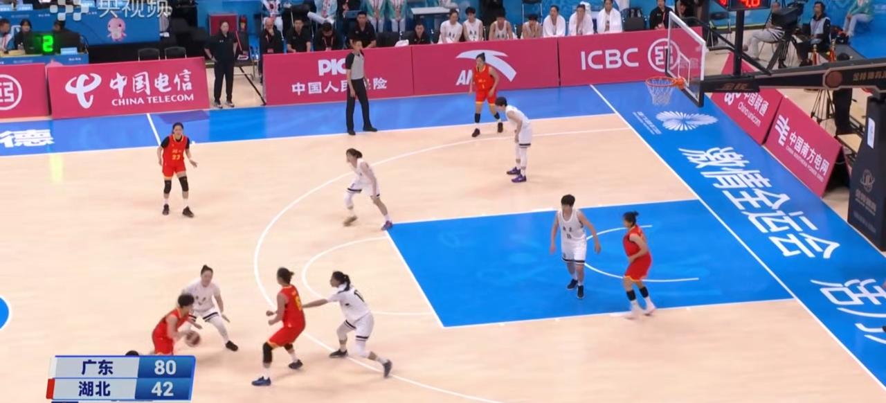 11月7日下午,全运会女篮赛场又现一边倒局面,广东女篮以103比57大胜湖北女篮