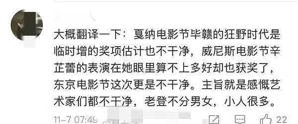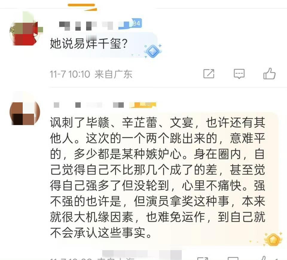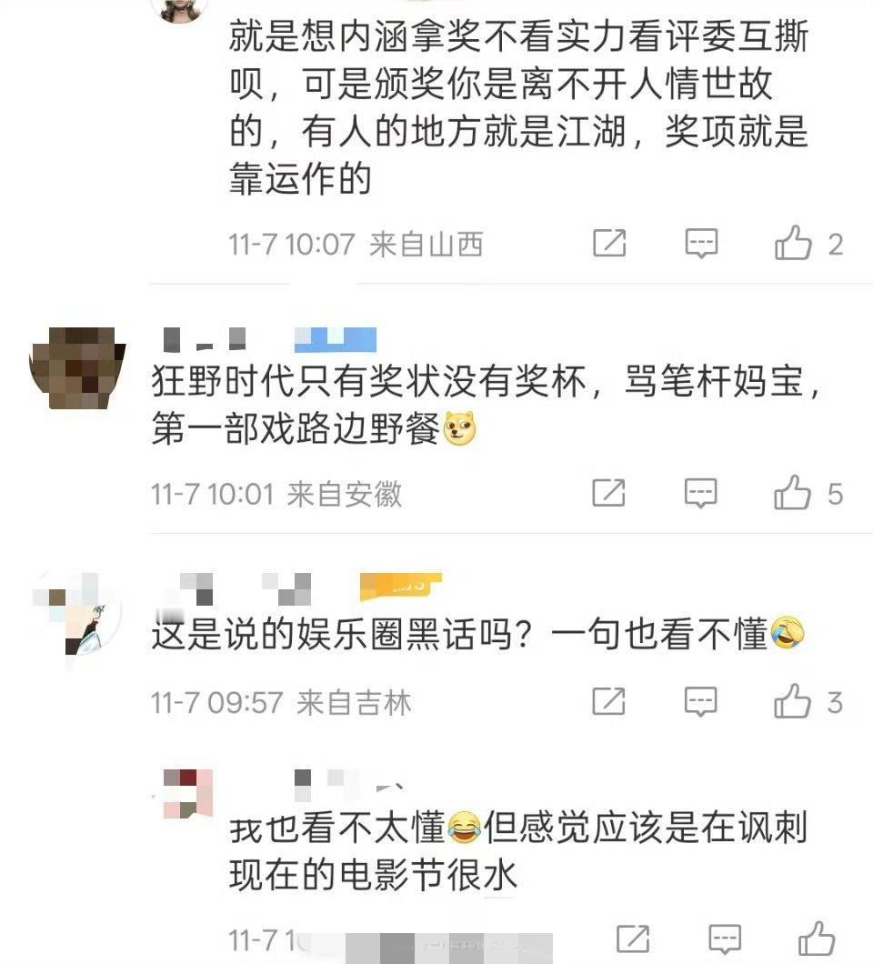 内娱大瓜!比电影还精彩😎!疑似郝蕾朋友圈发疯文学刷屏,直接无差别开怼三大国际电影节,字字诛心太敢说了! 先是吐槽戛纳给《狂野时代》搞临时奖项,只发奖状不给奖杯,还怼导演毕赣是“被宠坏的妈宝”,连人家处女作《路边野餐》都调侃成“街边吃饭”;转头质疑威尼斯影后含金量,暗指辛芷蕾靠“扯头发”戏获奖;最后补刀东京电影节“被几个女性玩转”,直言“艺术良心难有,小人之心遍地”。 这边郝蕾火力全开,那边辛芷蕾刚携新片《日掛中天》上映就硬刚回应,6连反问直击要害:“跟谁运作?拿钱吗?14年才运作一个影后?为啥是我不是别人?” 霸气表态相信电影的纯粹,也是相当圈粉! 其实奖项争议年年有,但能看到演员敢说真话、敢拼实力也挺带劲~ 你站郝蕾的“清醒吐槽”还是辛芷蕾的“实力自证”啊?觉得国际电影节奖项真有内幕吗?评论区聊聊你的吃瓜看法! 辛芷蕾回应奖项运作争议 郝蕾朋友圈内涵电影节