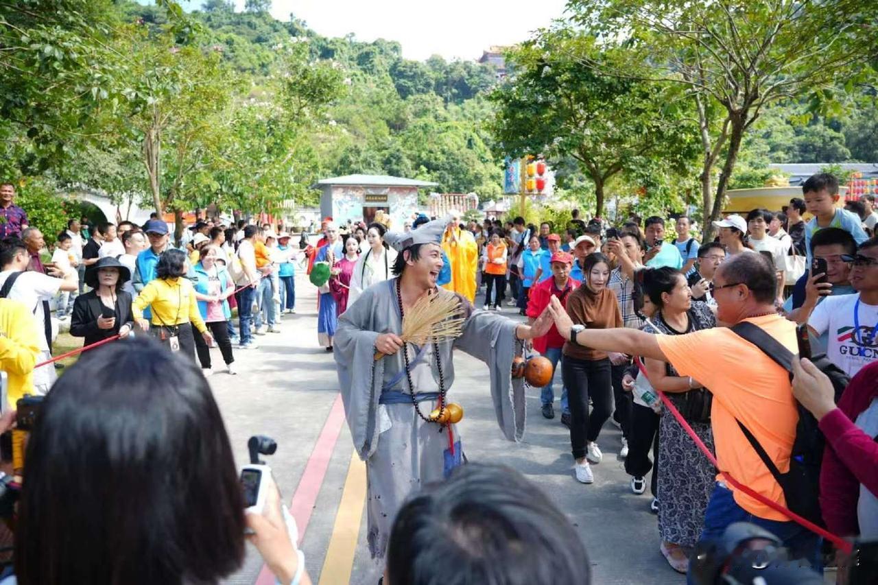 网红景区东莞观音山又玩新花样啦!近期正在热火朝天的举办第五届观音山仙侠会。活动现场,一曲曲经典武侠BGM此起彼伏响起,仿佛穿越到小时候向往的仙侠世界。据悉,本次活动从10月25日开启一直持续至12月末,融入了诸多经典的仙侠场景及文化故事,将于每周日精彩展演。活佛济公现场与游客欢乐互动;观音大士点化唐僧西行取经;寿星公舞动送福;福山锦鲤解锁好运……更有仙气飘飘的仙侠主题景点,随手一拍都是大片,感兴趣的小伙伴赶紧来打卡集邮吧!