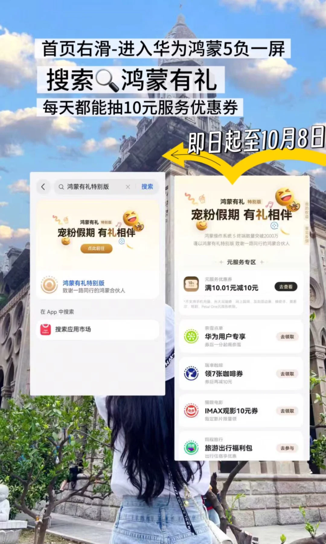 1.打开手机,右滑一下,进入华为鸿蒙5负一屏,搜索:鸿蒙有礼特别版,点击参与~就能领 10 元优惠券 即日起到10.8天天都能领!