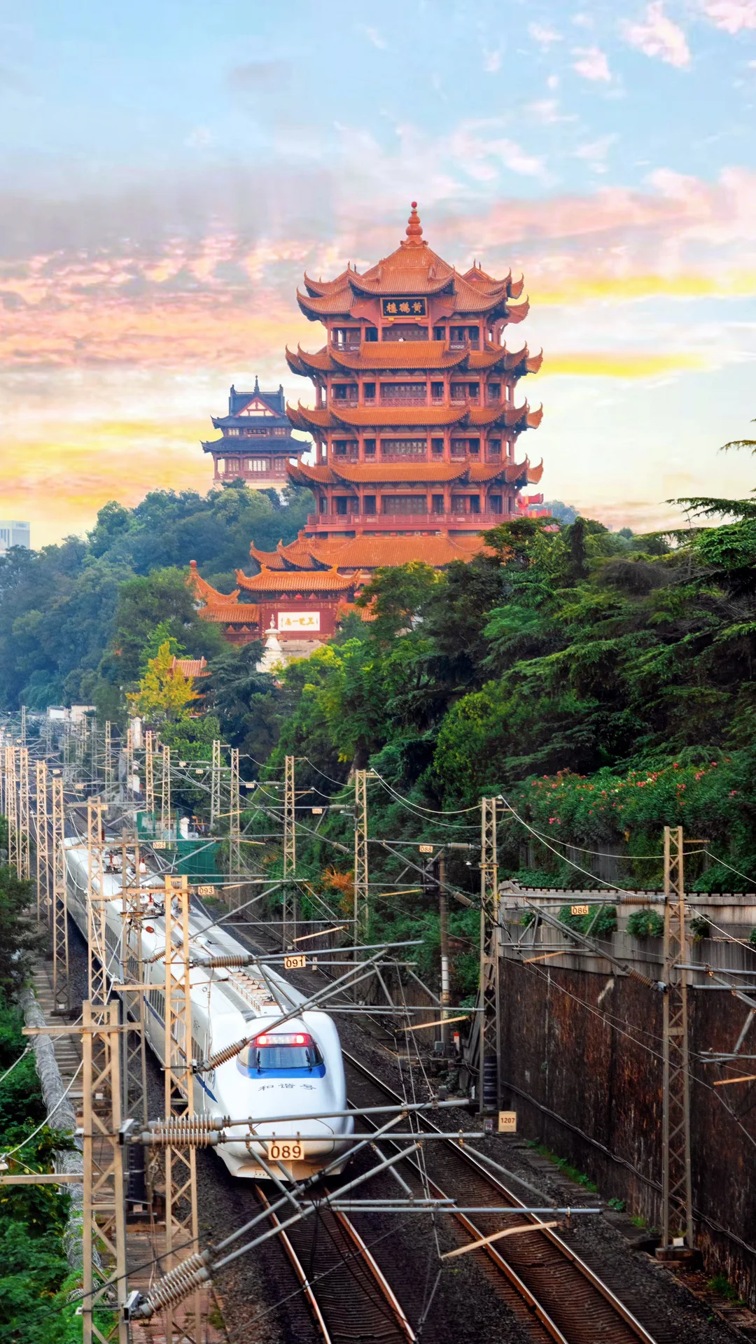 走行人道吹江风,拍 铁路➕黄鹤楼同框