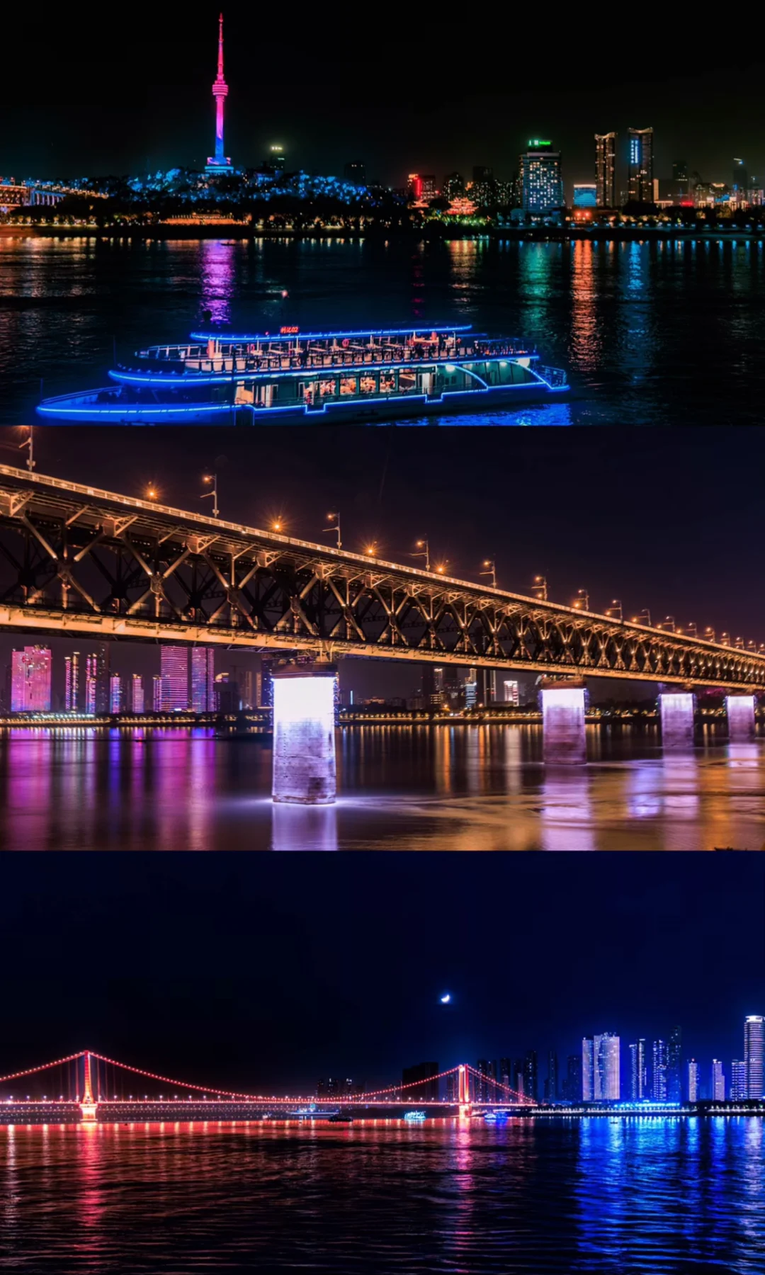 夜晚灯光秀超美,江面倒影与两岸灯光呼应!