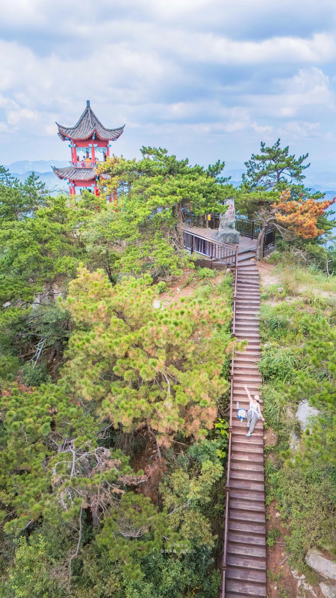 两座山峰像仙女下凡,有888米的主峰纪念碑