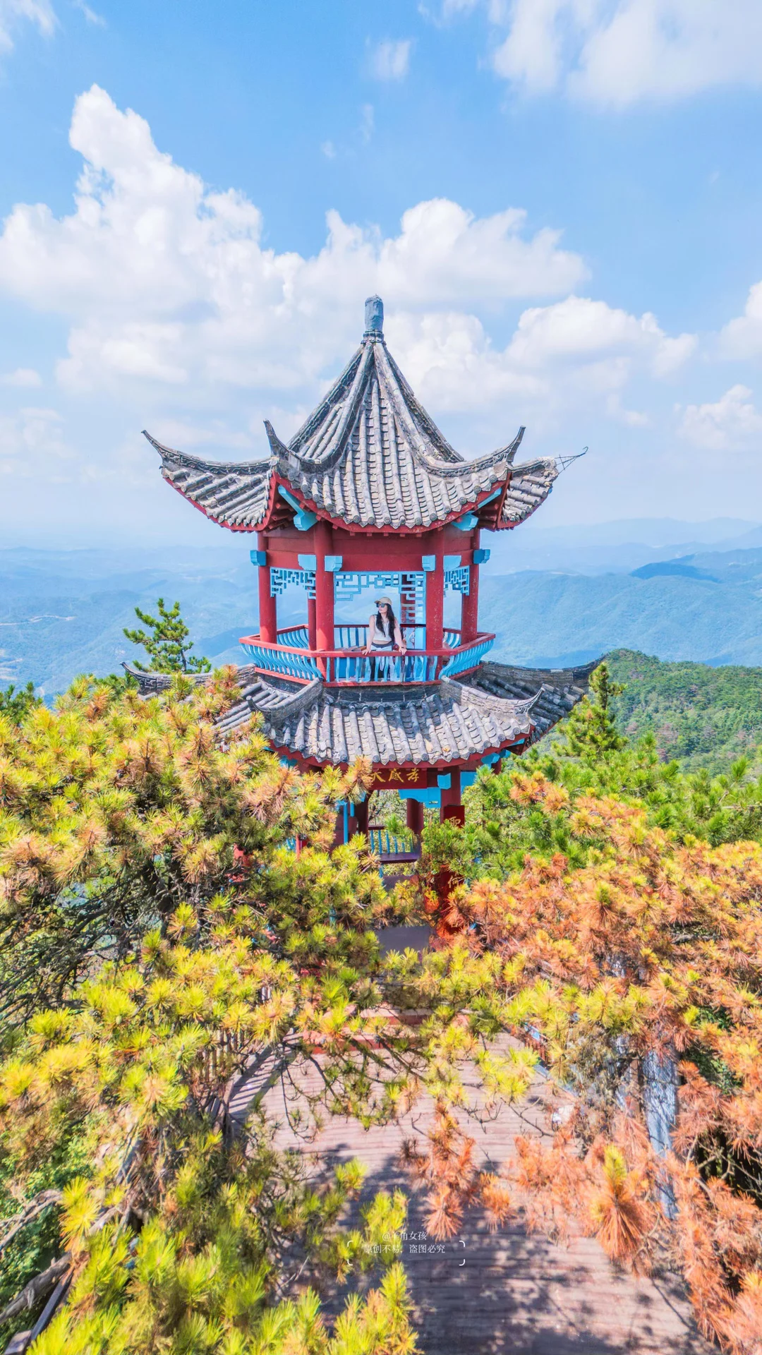 🉑️在凉亭上观看云海,仿佛置身仙境