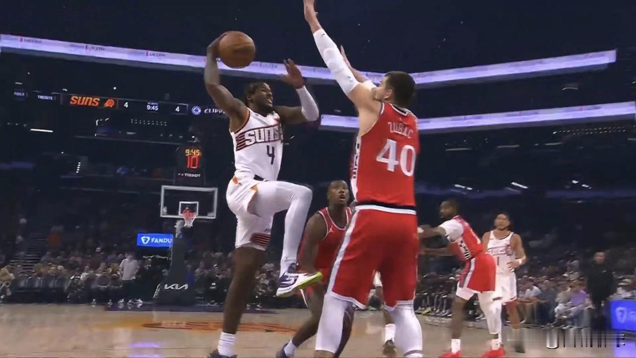 今天是杰伦·格林带领太阳出场的首场比赛,状态神勇的风雪哥面对没有雷纳德和哈登且孱弱的快船,整场比赛得到29分,三分13中6,正负值+30三分投射过于精准!
