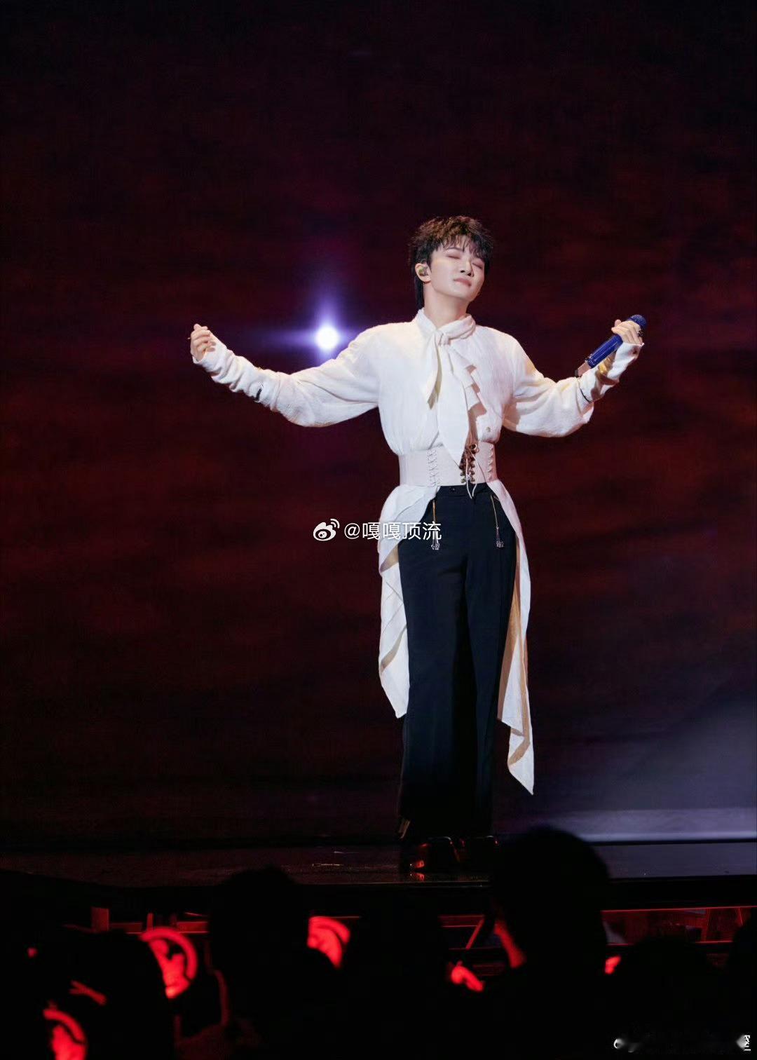 白色,象征着纯洁与高雅,与周深空灵纯净的嗓音相得益彰;束腰的设计,不仅凸显了他精致的身材比例,更展现出一种自信与从容。在舞台上,他的一举一动都充满了力量感,每一个眼神交流、每一次肢体表达,都与这身服装完美契合,营造出一种强烈的舞台张力。这种张力,并非刻意为之,而是源于他对音乐的热爱、对舞台的尊重以及自身扎实的专业素养。也难怪会让人无法挪开眼,因为这样的周深,就是舞台上最耀眼的存在。