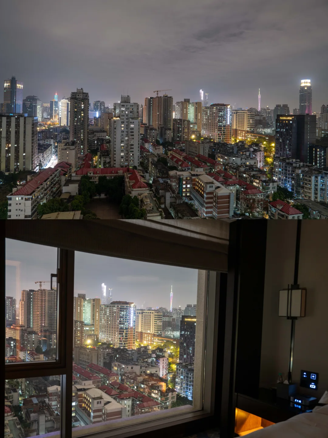 夜景美,房间窗户看到广州塔、珠江新城东塔与西塔等城市地标建筑非常惊艳。