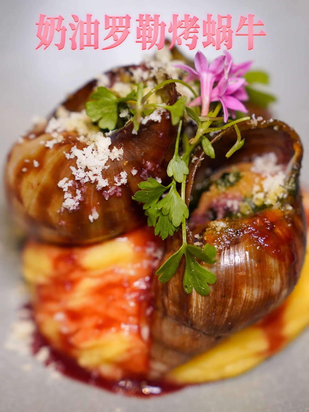 超正宗的法式焗蜗牛!奶油的浓香混合着罗勒的清香,每一口都是浓郁的法式风情,优雅感瞬间拉满!🍷