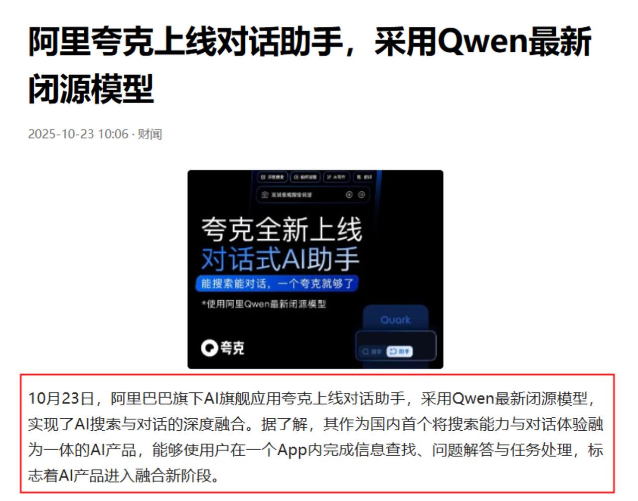 此前有媒体独家爆料称,夸克内部正在推进一个名为“C计划”的AI业务,并且近期就会有成果落地。这一消息传出,行业一下子热闹了起来,就连资本市场都有所响应,阿里的股价应声大涨了4个点。 同时各种传言也开始流传,有人认为夸克在搞AI眼镜、有人认为夸克在做AI浏览器…… 西方媒体口中的“AI核武器”终于揭开面纱,夸克“C计划”是直接集成在App首页的对话助手。 但这恰恰戳中了全球AI竞争的要害,难怪资本市场用阿里股价4个点的暴涨给出回应,那些嘲笑“只是个聊天工具”的人,根本没看懂这步棋的战略分量。 这场震动行业的风波早有伏笔,此前“C计划”的消息刚泄露,市场就炸开了锅:有人猜是对标谷歌眼镜的硬件,有人赌是挑战Chrome的AI浏览器,毕竟夸克今年7月刚发布过能联动支付宝支付、淘宝比价的AI眼镜,谁都知道阿里在憋大招。 但10月23日夸克11.0版本给出的答案更具颠覆性,不是另起炉灶做新产品,而是把通义千问最新闭源模型塞进搜索入口,做成国内首个“搜索+对话”深度融合的AI工具。 这绝非简单的功能叠加,用户打开夸克就能直接问问题、拍题解题、让AI写文档,甚至用自然语言调网盘文件,实现“对话即操作”的闭环。 更关键的是技术硬实力,其搭载的Qwen3-Max模型性能已冲进全球前三,远超普通通用助手,今年6月夸克高考大模型单日出题1.8亿次的战绩,早证明了它在垂直场景的穿透力。 这种“搜索底座+专业大模型”的组合,比单纯的聊天机器人实用得多,也比传统搜索效率高得多,正好击中了AI落地的核心痛点。 资本市场的反应最诚实,4个点的股价涨幅背后,是机构对阿里AI战略的重新估值。要知道夸克是阿里AItoC的“先遣队”,月活近1.5亿且决策灵活,今年3月喊出“2亿人的AI全能助手”口号后,AI生成内容占比已达42%,9月上线的“AI超级框”日均调用量环比涨220%。 现在“C计划”落地,等于给这个高速增长的入口装上了涡轮增压,既能打破集团内部的数据墙,又能反向赋能电商、云计算等业务,从流量入口变成能力出口,这种生态价值远比单一产品值钱。 西方真正坐不住的是中国AI在“场景落地”上的弯道超车。谷歌、微软还在比拼模型参数时,夸克已经把AI塞进了2亿年轻人的学习、办公场景,这种“技术+场景”的协同进化速度,让西方巨头难以企及。 更要命的是“C计划”只是开始,除了已上线的对话助手,传闻中还有对标Chrome的全新浏览器,加上已发布的AI眼镜,夸克正构建“手机端+硬件端+云端”的多模态生态,这种“端云协同”模式,比单纯的软件服务更难复制。 从全球榜单就能看出端倪,夸克已冲进全球消费级AI应用第九名,把第十二名的豆包都甩在身后。当西方还在争论AI伦理时,中国企业已经把技术做成了能解题、能办公、能联动生活服务的实用工具。 夸克用一个对话助手告诉世界:AI的胜负不在实验室里的参数表,而在用户每天的使用场景中。这场“C计划”首秀,本质是中国AI从技术追赶转向生态领跑的宣言,也是对西方垄断AI入口的直接挑战——这才是让他们真正焦虑的“核武器”。