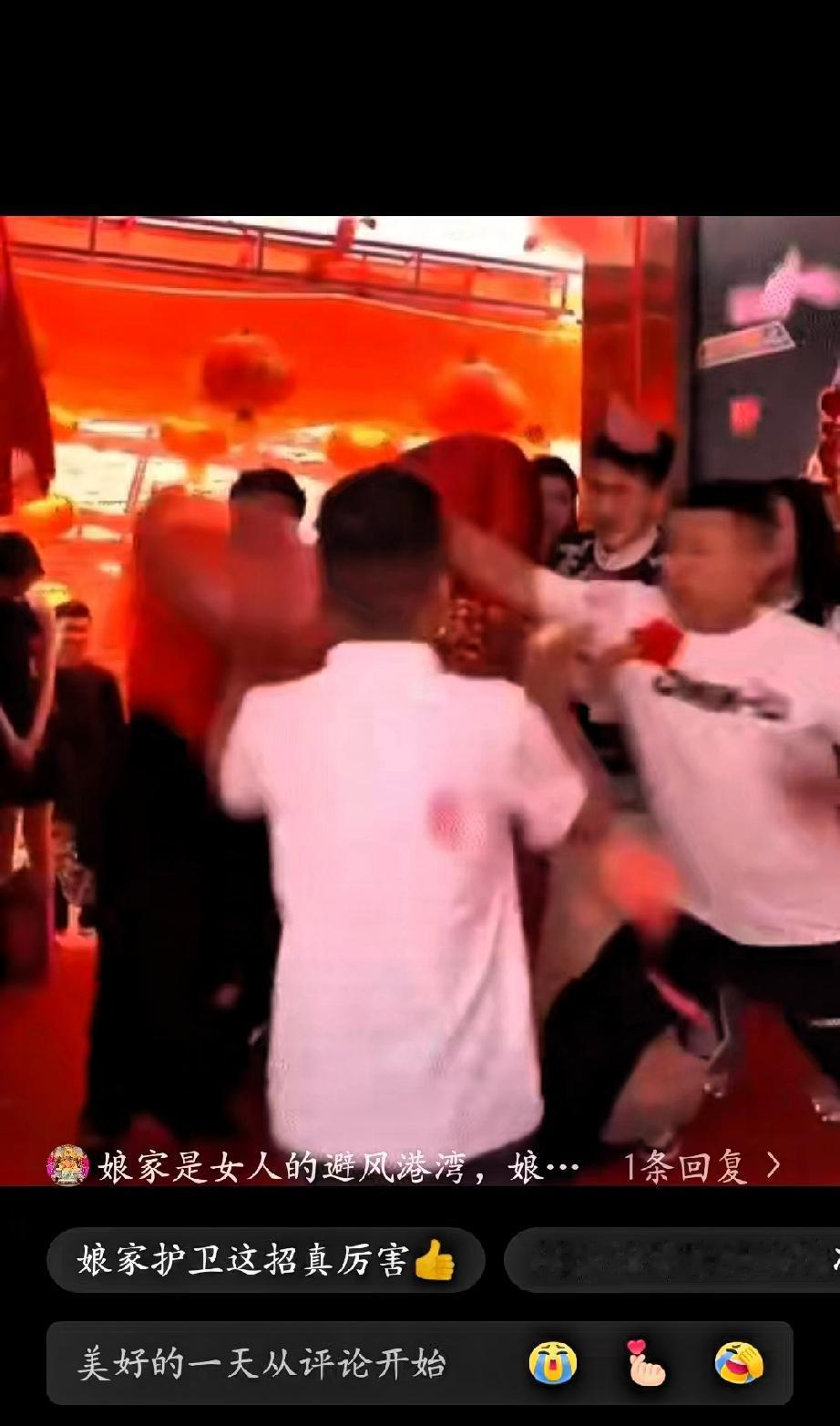 新娘子刚进门,一男子猛扑上去闹喜,被娘家护卫一招反杀,干净利索,毫不拖泥带水 那小伙也不管新娘啥情况,伸着胳膊就往新娘身上扑,嘴里喊着“闹喜呢”,动作又猛又急。这哪是闹喜啊,简直是胡闹!新娘怀着孕,身子本就弱,最怕磕碰,就算是个健康人,被这么猛不丁扑一下也得摔着,要是撞着肚子里的孩子,这好好的喜事不就彻底毁了? 周围人都还没反应过来,娘家人先动了!新娘身后的几个亲戚眼疾手快,没等小伙碰到新娘,上去就稳稳把他架住了,动作干脆利落,没半分拖泥带水,三两下就把人按得动弹不得,几秒钟就化解了危险,看得人心里一下子就松了口气。 真得给这娘家人竖大拇指!关键时刻一点不含糊,直接冲上去护着新娘,这才是娘家人该有的样子——不是来撑场面,是真把新娘的安危放在第一位。结婚图热闹没错,但闹喜得有规矩,有底线,对着孕妇“下狠手”,那不是传统,是缺德,是拿人的安全当玩笑。 那些借着“闹喜”名义瞎折腾的陋习,早该改改了。喜庆的日子,安安稳稳让新人高兴,比啥都强。 你们身边结婚,遇见过这种没分寸的闹喜吗?