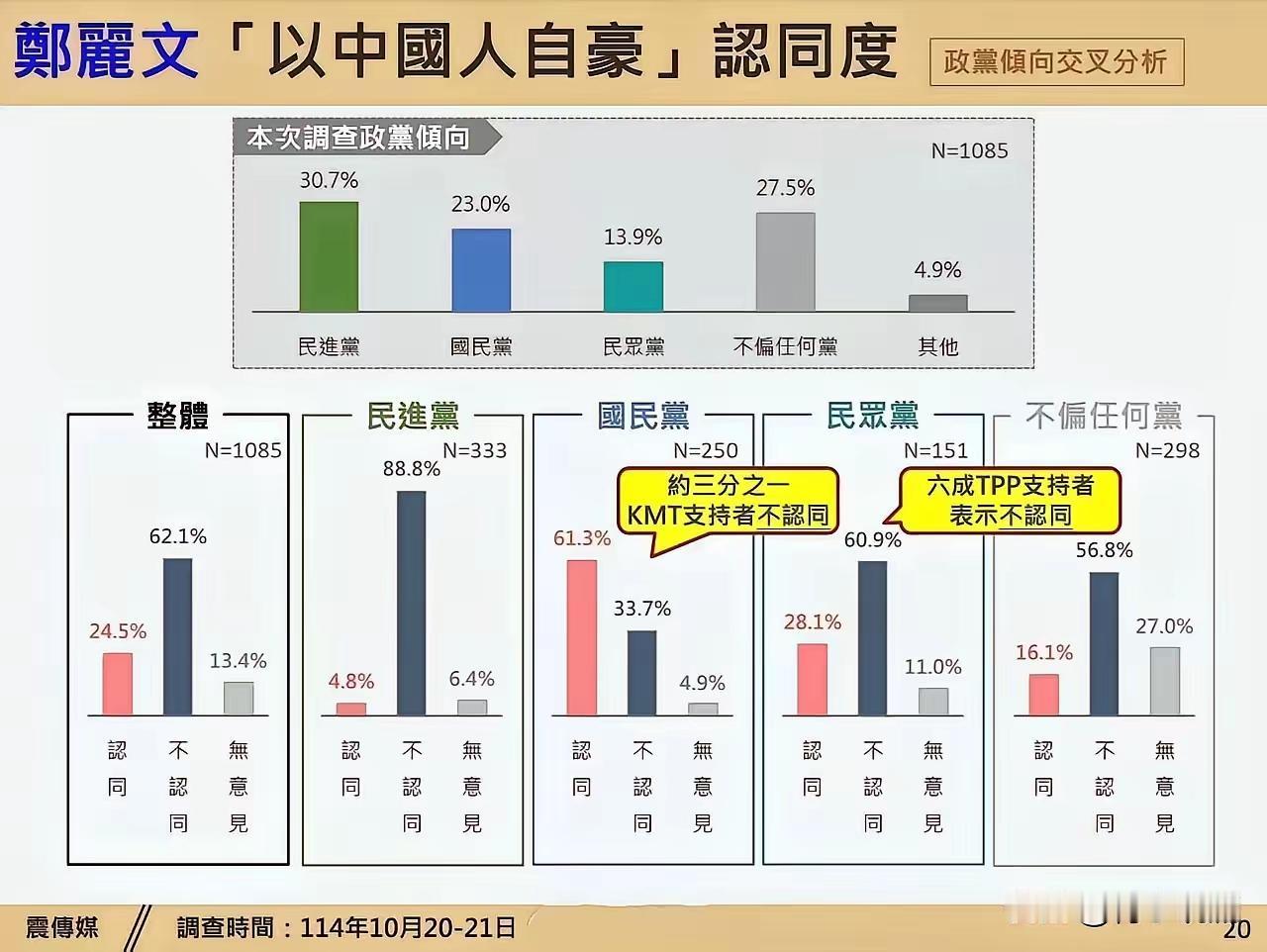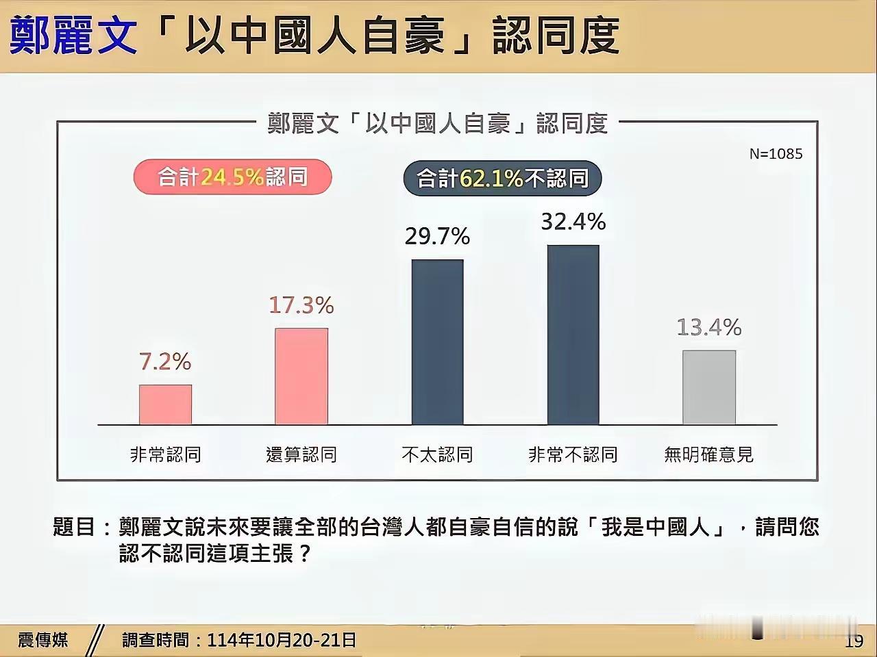 如今台湾省年轻一代的中国认同感已经降低到了极为可怕的程度,已经快与被日本殖民统治50年后的样子差不多了。 台湾最新民调显示,支持统一者不足15%,部分数据仅11.8%,“独”派支持率超48.9% 日本战败时,台湾有个女学生回家问祖父:“我们亡国了吗?” 祖父用烟杆敲了下女学生的头,然后郑重纠正她,“是我们中国人打赢了”。 八十多年后,那些能敲打他们的先辈已经消离开了。 如果他们再不清醒,祖父的烟杆只能换成炮弹了。