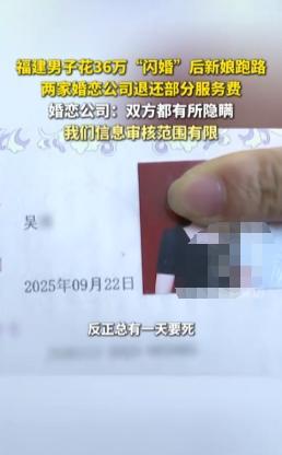 真是两头骗!福建一男子花36万娶妻,没想到只共同生活了4天,女方就跑路了,男子到