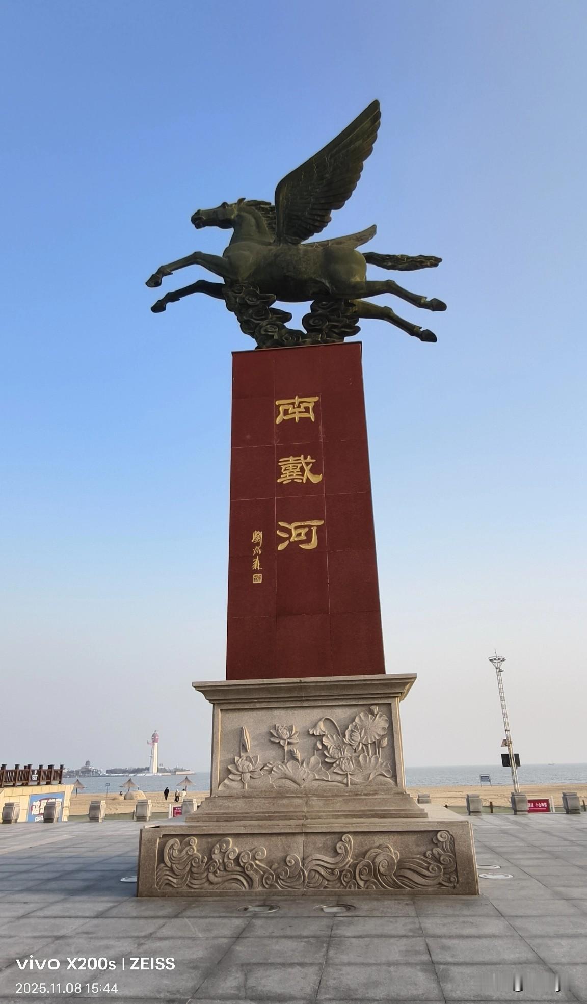 打卡南戴河天马广场。海边,广场还是那个广场,天马还是那个天马,只碑上题字十几年前是薄一波题的,后来换成了书法家刘炳森的字。 天马文化广场 南戴河夜景