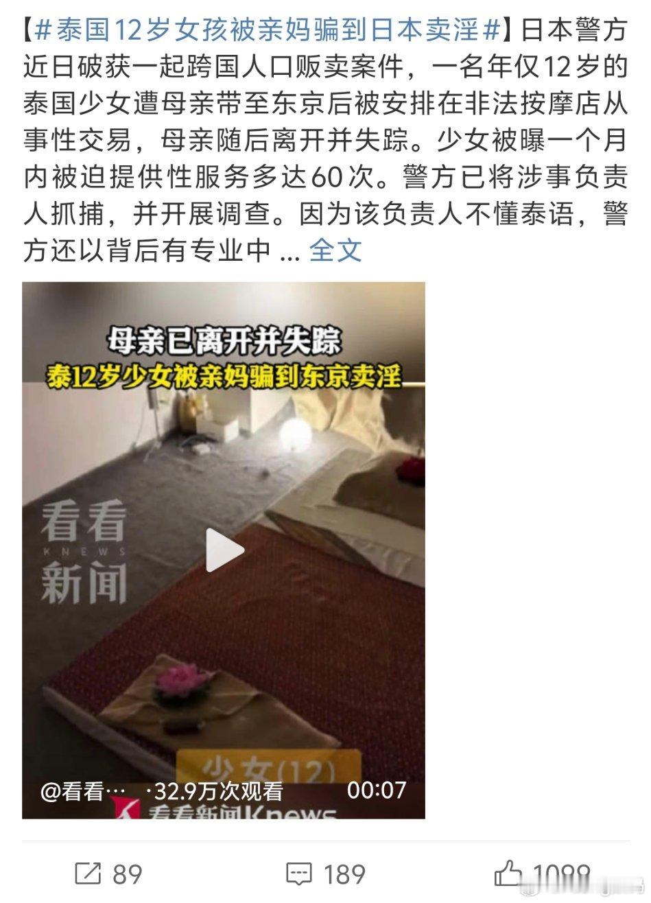 泰国12岁女孩被亲妈骗到日本卖淫