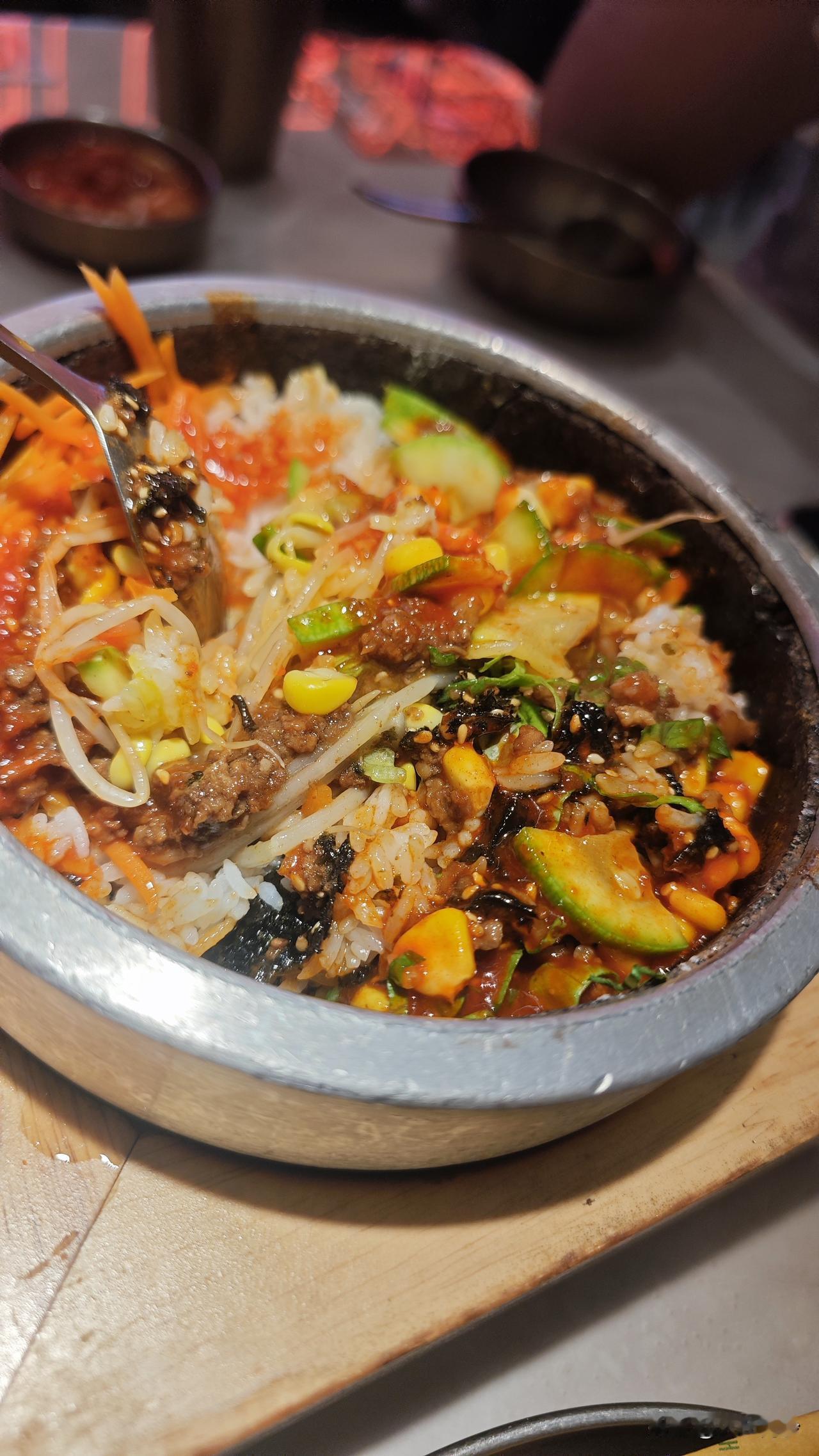 【南沙吃货】二刷环宇城韩顺英,之前第一次吃感觉一般,这次团购又便宜了,在刷一次。68块的欧巴套餐,可以选两个饭,两个小吃,两杯饮料。 经典石锅饭还是挺可以的,番茄肉碎饭孩子们也很喜欢吃。最好吃的竟然是小吃,鸡肉卷味道真的绝,可惜分量少了一点,鱼饼条味道也很不错。 可惜竟然没啥面食,只有一个辛拉面和冷面。 整体的话我觉得吃韩国拌饭个人还是首推 cocopark 的米庄,可惜米庄好久时间不做团购了。而韩顺英的话环境相对好一点,适合情侣拍拖。