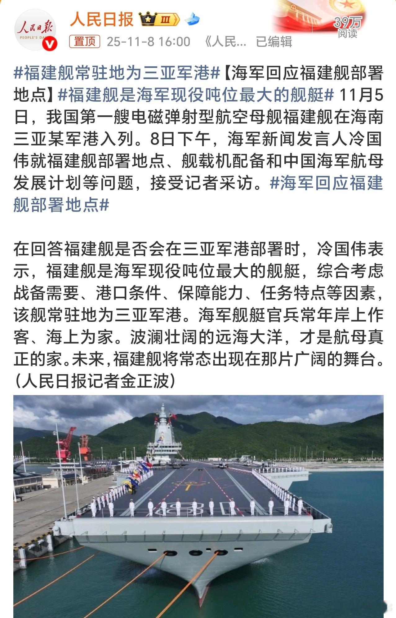 福建舰常驻地为三亚军港福建舰常驻地落户三亚军港,这直接控扼南海辐射太平洋,穿越岛链也是常态。这句“海上为家”更是常态化远海决心。不过现在网友又开始期待第四艘国产航母吗?时刻关注达利安造船厂动态[哈哈]!