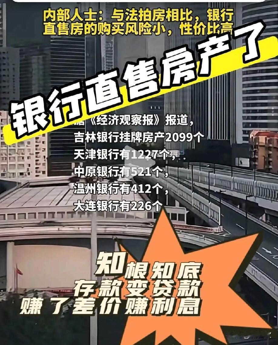 乖乖一夜之间房产中介集体懵圈! 不是不让卖房了, 而是银行居然 亲自下场抢生意了! 四川农信直接挂牌超2.4万套房产, 还放话比法拍房更有性价比。 更绝的是,吉林银行、天津银行等多家银行都在跟进售房。 这哪里是跨界, 分明是要重塑房产交易格局! 银行卖房绝非心血来潮, 背后其实是不良房贷的处置需求。 断供潮后,银行收回大量抵押房, 只能亲自出手变现。 这也侧面说明楼市去库存压力不小, 连金融机构都要亲自下场帮忙。 对购房者来说,或许是捡漏机会, 但对中介行业来说,狼真的来了! 大家觉得银行卖房会彻底颠覆房产交易市场吗? 未来买房会不会更便宜?