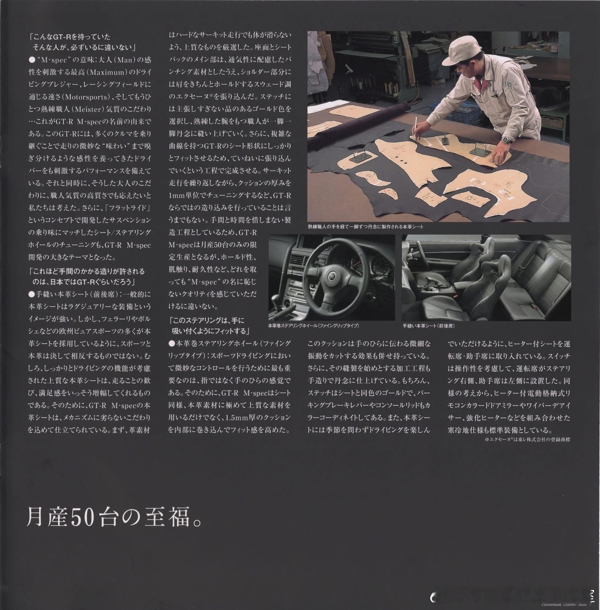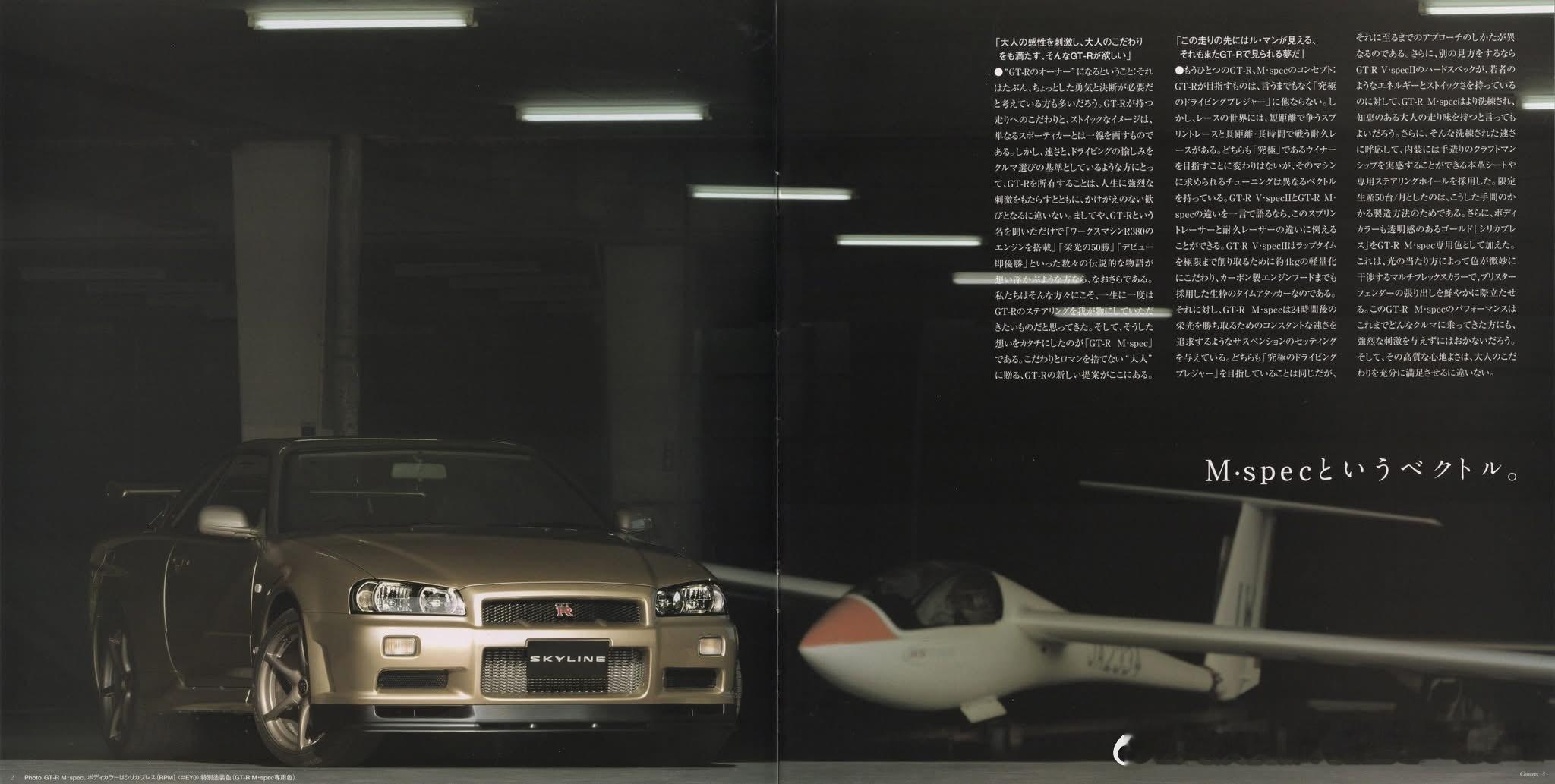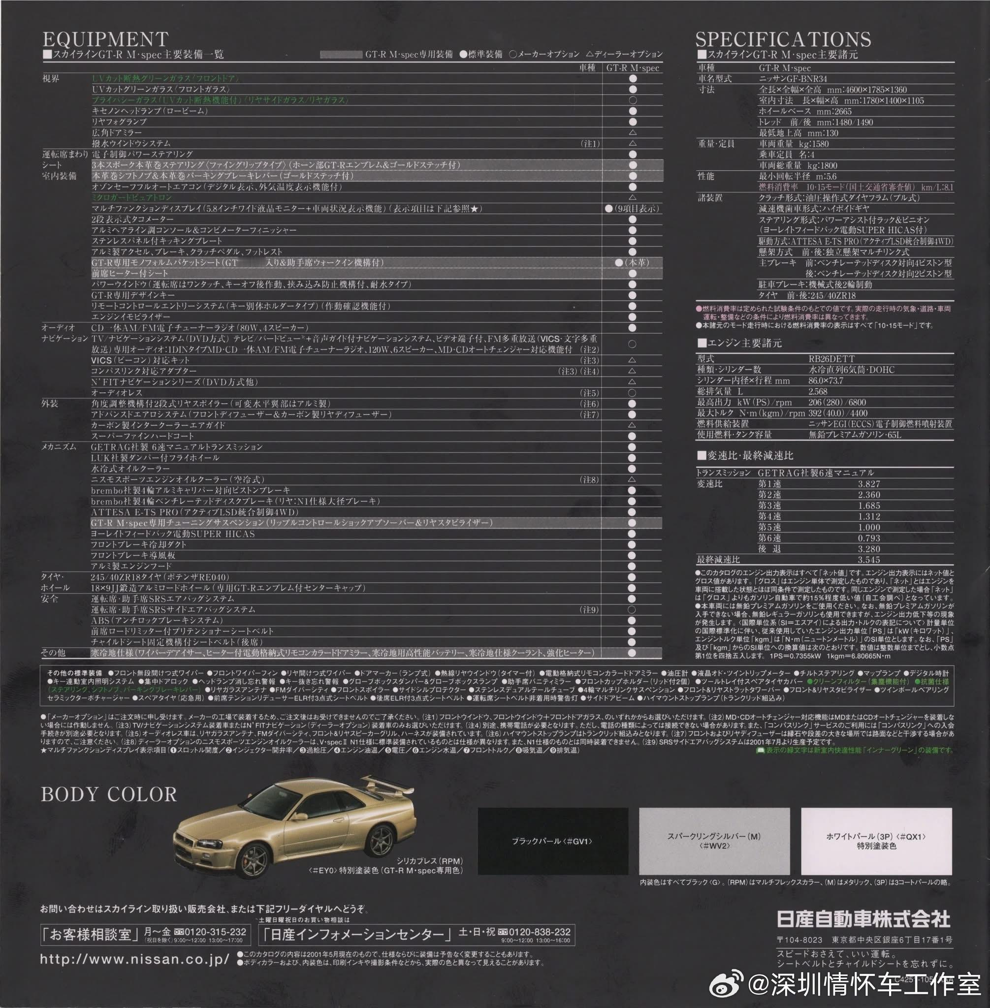 1999年日产GTR R34 M-Spec车型,M-Spec版本是为了纪念当时的项目经理水野和敏而推出的,M是水野名字的首字母。该版本更强调乘坐舒适性和驾驶质感,采用相对舒适的悬架设定以及滤震效果更好的避震器,座椅则采用了真皮材质以及加热功能。