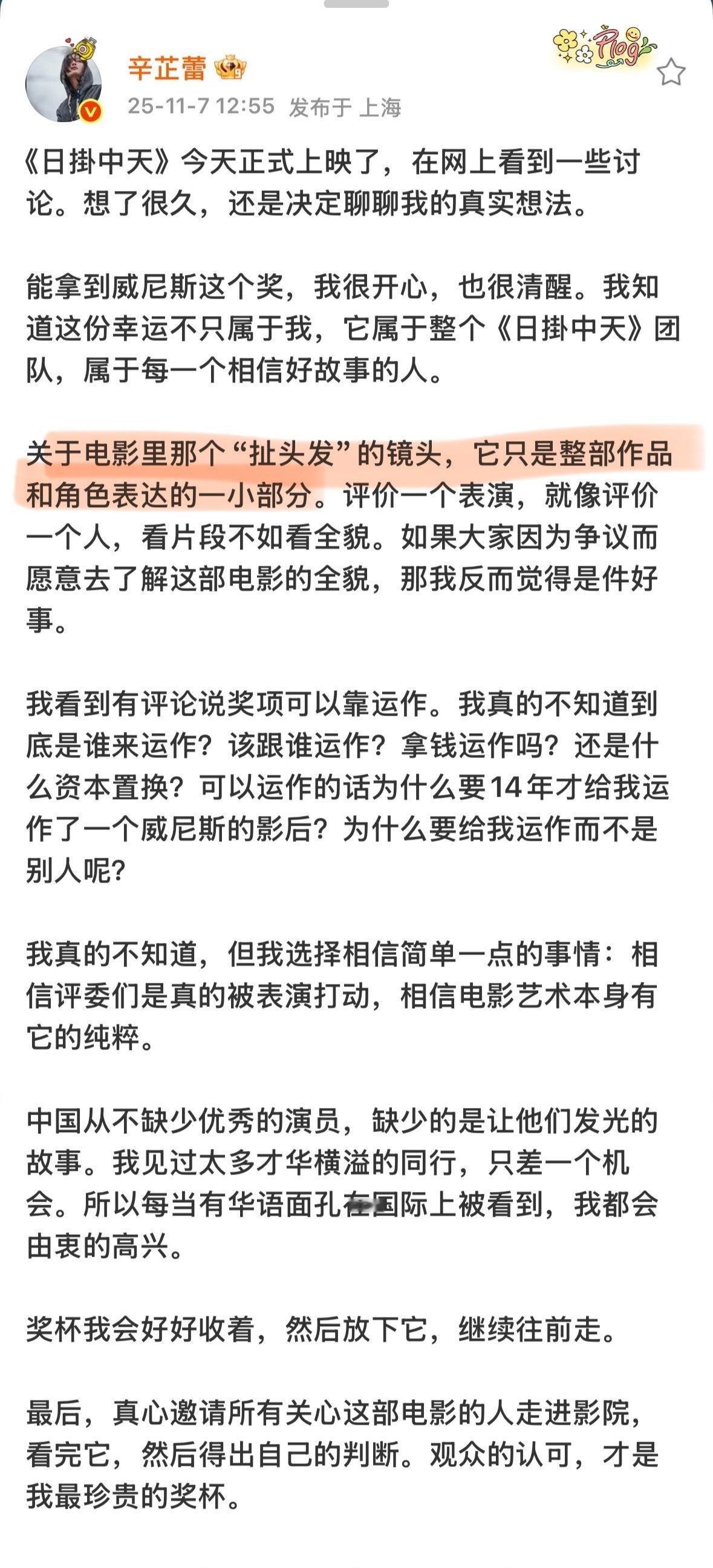 妈耶辛芷蕾还是勇敢,发微博回应了这个疑似郝蕾说她靠扯头发拿影后[柯基]