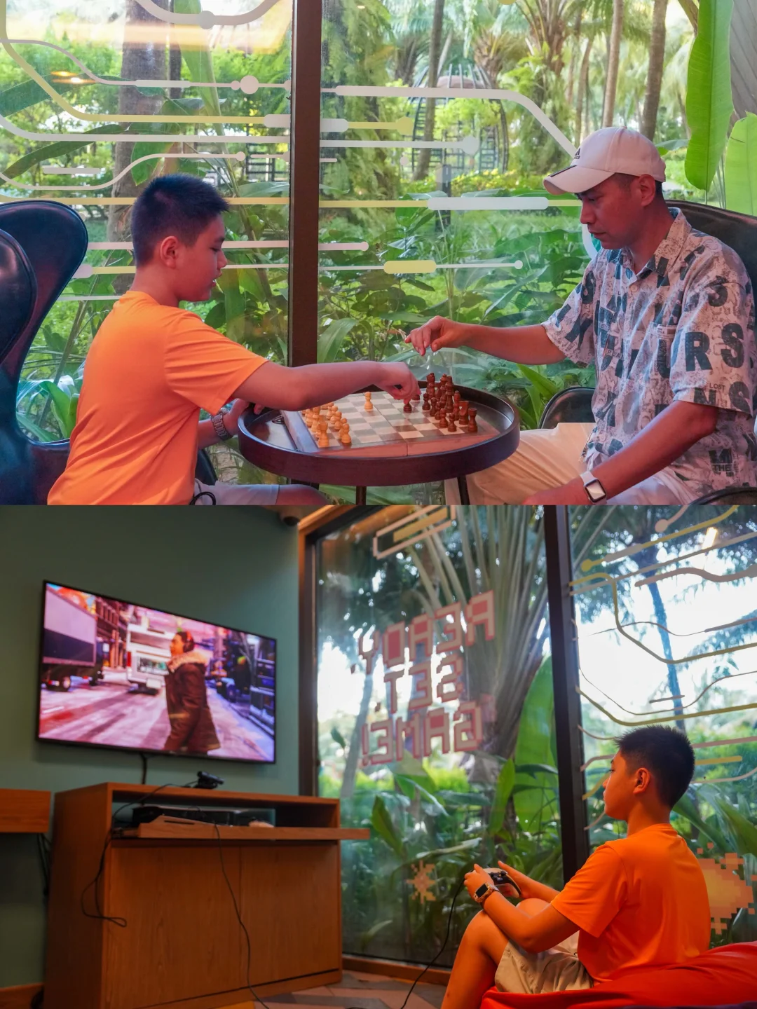 我家孩子大一点,超爱活动中心的PS 5和桌游区,根本不想走🤣