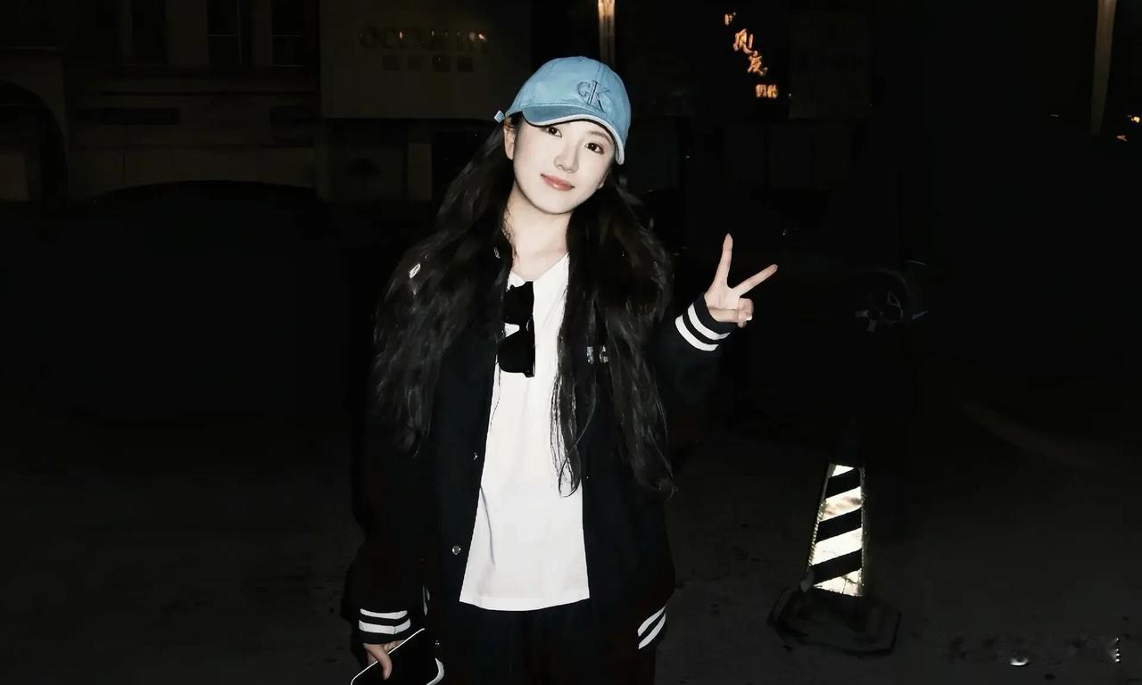 夜晚街头的甜美少女,红白格子裙,微笑动人
