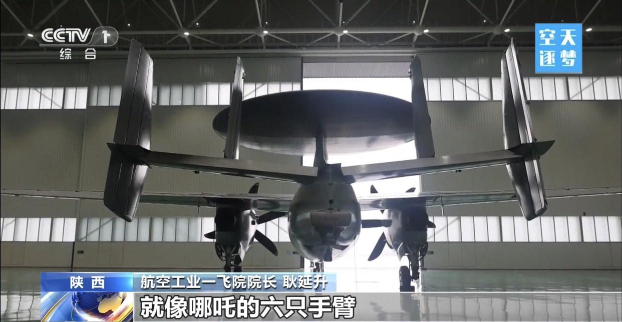 空警-600预警机的设计师表示,他第一次看到自己设计的舰载机空警-600预警机的机身实物时,感到大受震撼,预警机上的预警雷达很大,能探测到很远的距离,他形容空警-600预警机就像哪吒张开六臂,手里拿着乾坤圈那样威风凛凛!