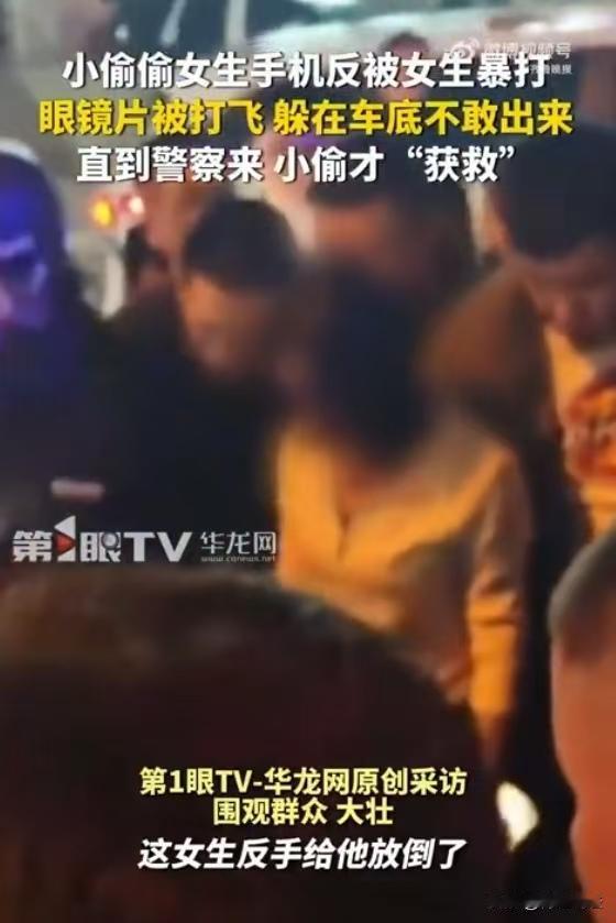 女侠在世!山西,一个小偷在大街上偷女孩手机,女孩逮到后反手将小偷放倒在地,一拳把他眼镜片打飞了,小偷被打的抱头窜到车底下半小时。直到民警到场,小偷仍在车底下哆嗦着不敢出来,围观群众笑疯了:这算正当防卫吧? 据第一眼新闻报道,案发当晚,大壮正在路上行走,看到前面一大群人围在路边,大壮好奇之下走过去,问旁边的人咋地了。 旁边人热心地对大壮说,刚刚有个小偷偷一个女孩的手机,谁知刚拿到手就被女孩逮个正着,小偷想跑,女孩一个扫堂腿将小偷放倒在地上,接着就对小偷一通拳打脚踢。 小偷直接被女孩打懵了,就连眼镜都被女孩打飞出去,镜片都掉了。 女孩非常生气,一边打一边数落小偷,小偷被打得连连求饶,最后实在扛不住了,看到路边停着一辆车,呲溜一下藏在了车下面。 围观群众对女孩肃然起敬,也被小偷的怂包样子逗的忍俊不禁。 大壮站在旁边看了半天热闹,小偷躲在车底下后,女孩不停让他出来,小偷吓得都哆嗦了,躲在车下半个小时都不敢动。 后来有围观群众报了警,民警到达现场后让小偷出来,小偷还是半天没敢出来,出来后他又跪在地上找了半天眼镜。 围观群众看了半天好戏,小偷被带走后仍意犹未尽。有人说,现在不可能吃不上饭,就算再困难,路边饭店说一声,也有人愿意给一碗饭吃,这种手脚不干净的就该打,女孩属于正当防卫。 那么,东西被偷后抓小偷,是否属于正当防卫?抓小偷时应该注意什么? 《刑法》第二十条规定,为了使国家、公共利益、本人或者他人的人身、财产和其他权利免受正在进行的不法侵害,而采取的制止不法侵害的行为,对不法侵害人造成损害的,属于正当防卫,不负刑事责任。正当防卫明显超过必要限度造成重大损害的,应当负刑事责任,但是应当减轻或者免除处罚。 也就是说,在合法权益遭到不法侵害时,采取的制止不法侵害的行为叫做正当防卫,但是正当防卫要有一个合理限度,超过这个限度,就不属于正当防卫,而是防卫过当,很可能构成故意伤害。 这起事件中,小偷实施了盗窃女孩手机的行为,盗窃行为正在进行,女孩的财产权正在遭受不法侵害。 女孩此时将小偷放倒并进行攻击,其目的是制止小偷的盗窃行为,保护自己的财产权利,女孩的行为具有防卫性质。 但是,小偷被放倒后,盗窃行为已经被有效制止,小偷处于明显的劣势地位,并且开始连连求饶。 在这种情况下,如果女孩继续对小偷进行长时间、无节制的攻击,可能会被认为超过了必要的限度。 因为正当防卫的时间条件要求防卫行为必须在不法侵害正在进行时实施,当不法侵害已经结束,就不能再以正当防卫为由继续攻击侵害人。 所以,严格来说,女孩最初制止小偷盗窃行为的举动属于正当防卫,但后续的攻击行为是否超过必要限度,需要结合具体情况进一步判断。 一般来说,在这种事件中,如果小偷仅构成轻微伤,女孩不会构成防卫过当。 那么,在日常生活中,如果遇到抓小偷,应注意什么? 抓小偷时,防卫行为应当以制止不法侵害为必要限度。 也就是说,采取的措施只要能够有效制止小偷的盗窃行为、保护自己的财产安全即可。 防卫行为所造成的损害应当与不法侵害可能造成的损害相当。 在盗窃案件中,小偷的行为主要是侵犯财产权,一般情况下不会对人身安全造成严重威胁。 因此,抓小偷时不应该使用可能导致小偷重伤或者死 亡的手段。例如,不能使用具有重大危险的器械对小偷进行攻击,否则可能会被认定为防卫过当。 对于本案,您怎么看?