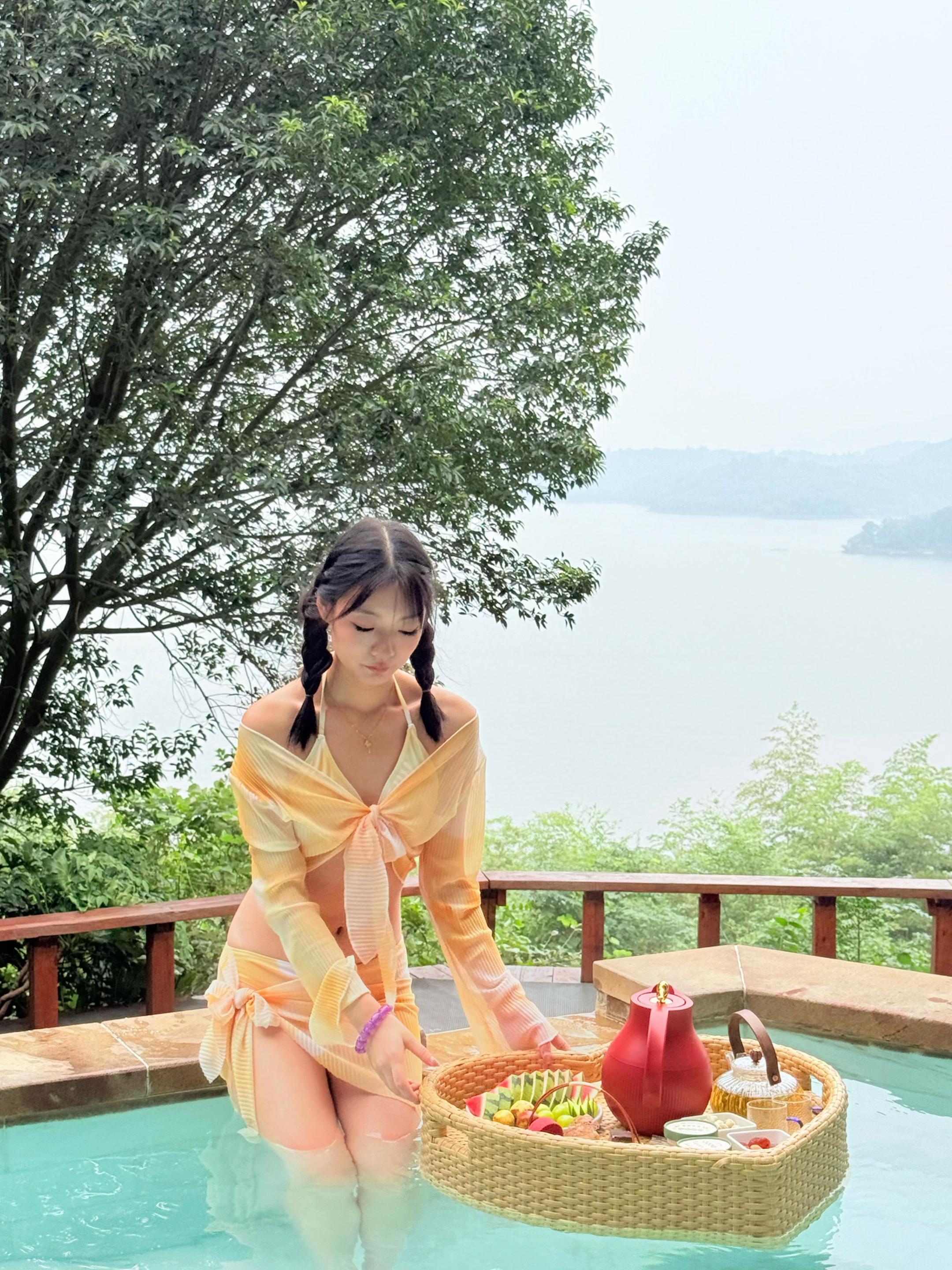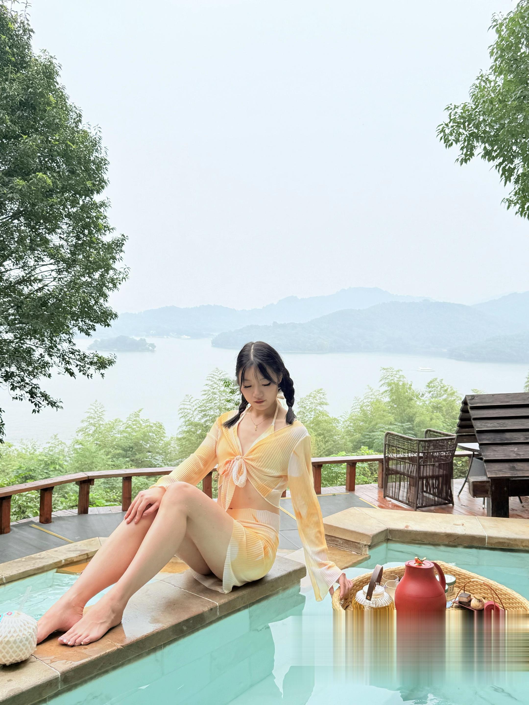救命!粉色泳衣直接把纯欲感焊在身上了🌸