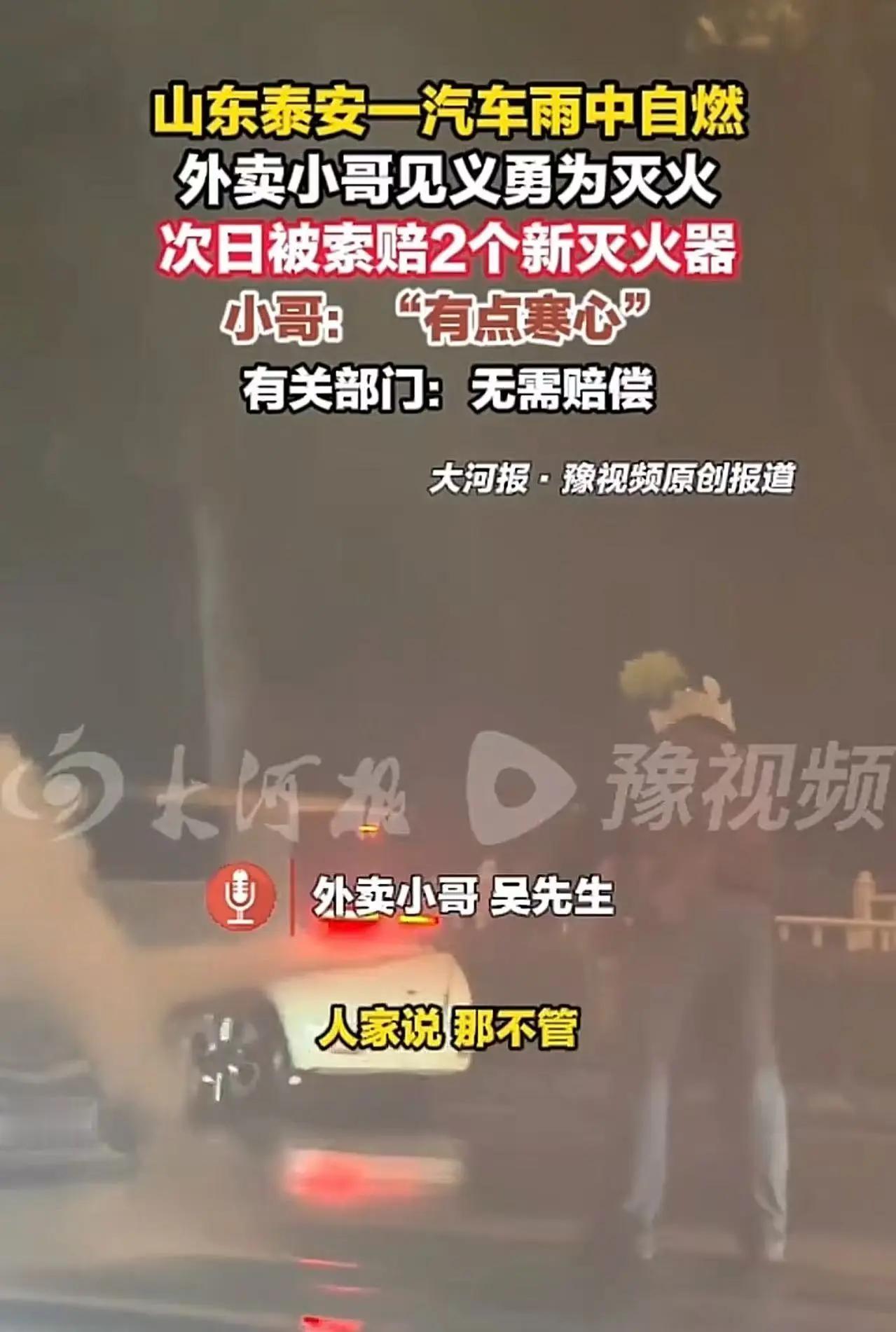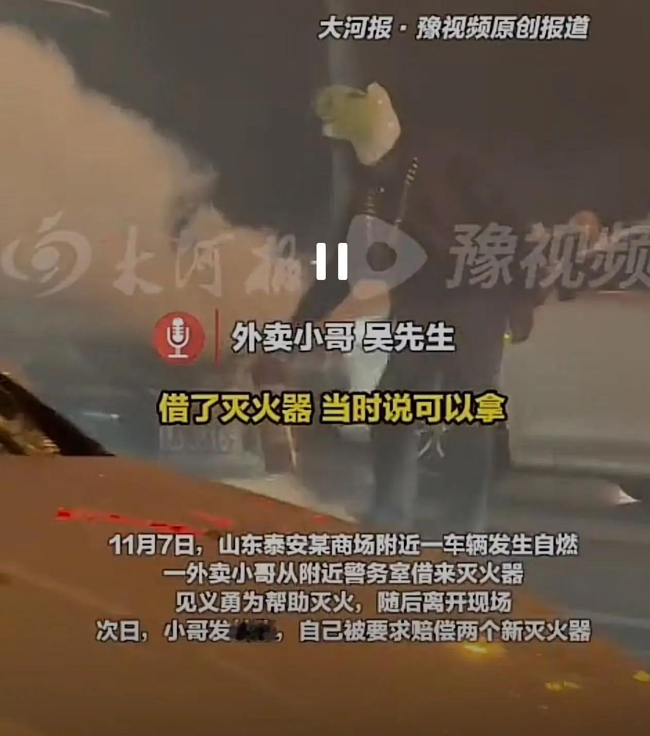 【泰安“英雄”外卖小哥:从救火到索赔,谁在践踏善意?】 事情发生在山东泰安,一辆普通的车辆突然自燃,本是一次意外,却引发了一场让人扼腕叹息的“善意受伤”。这位外卖小哥,平日里奔波在城市的角落,为了那份责任与热爱,冒着酷暑寒冬送餐到每一户人家。而这一次,他的善举却被“索赔”事件打了个措手不及。 事情的经过很简单,也很感人。那天,小哥在送餐途中,发现一辆车突然冒烟,火势还在逐渐蔓延。危急时刻,他没有犹豫,立刻跑到附近的警务室借来了灭火器,奋不顾身地冲向火场,拼尽全力将火扑灭。正是因为他的及时行动,避免了一场可能的巨大灾难。很多人会觉得,这是一个普通人应尽的责任,更是一份暖心的善意。 然而,令人难以接受的是,第二天,小哥却迎来了令人震惊的“索赔通知”——车主竟然要求他赔偿两个全新的灭火器!这让原本应该被赞扬的英雄,变成了被指责的“赔偿者”。网友们纷纷站出来发声:要赔也是起火车主赔,因为起火车是受益方,外卖小哥只是施救的善心使者。 这件事折射出什么?是社会对“善意”的无感,还是我们对“责任”的扭曲?更令人心碎的是,善意在某些人眼中似乎变成了“理所当然”的负担。外卖小哥只是做了他应该做的事,却被推到了风口浪尖,甚至被要求“赔偿”。这难道是对普通人的善意的一种讽刺吗?还是社会价值观的扭曲? 在我看来,这背后隐藏着更深层次的人性问题。我们习惯了在危机中寻求英雄,却很少去思考,英雄的付出是否应该得到尊重和保护。那些在火场中奋不顾身的人,是城市的守护者,是人性光辉的象征。而当他们的善意变成“负担”,我们是否也在无声中否定了善良的价值? 更令人愤怒的是,这样的事件其实并不罕见。每一次的“索赔风波”,都在提醒我们:社会的温度似乎在逐渐冷却。我们习惯了用“法律”、“责任”来划分善恶,却忽略了善意本身的价值。善意不应该被条件化,更不应成为被索赔的理由。 这件事也引发了网友们的热议。有人说:“要赔也是车主赔,因为起火的责任在车主,外卖小哥只是救火的英雄。”有人则感慨:“社会需要更多像他一样的善良,不要让善意变成负担。”还有人提出:“希望相关部门能出台更明确的规定,保护那些在危难时刻挺身而出的普通人。” 是的,善意本应是一种无私的力量,是社会最温暖的底色。而我们每个人,都应当成为这份善意的守护者。不要让英雄的付出变得徒劳,也不要让善意在利益的夹缝中被扭曲。 这起事件,值得我们每个人深思。善良不是软弱,而是一种力量;责任不是负担,而是一份担当。希望在未来的日子里,我们都能用更多的理解和包容,去守护那些在危难中伸出援手的“英雄”。因为,只有这样,我们的社会才能真正变得更加温暖、更加有希望。 最后,给所有像那位外卖小哥一样的“英雄”们点赞!你们的善意,值得被这个世界记住,也希望这个世界,能多一些理解和善待那些默默付出的人。外卖员光荣事件 外卖哥见义勇为