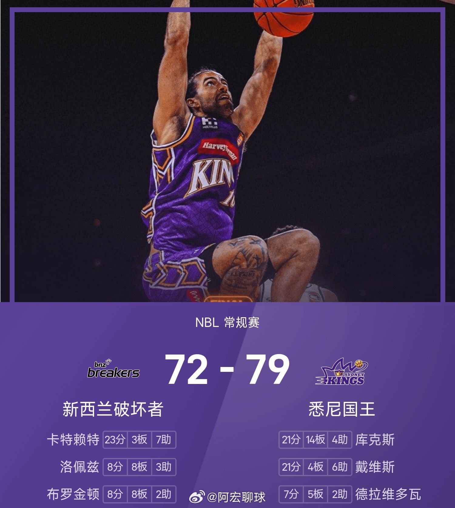 25/26赛季NBL常规赛,悉尼国王对阵新西兰破坏者。双方全场战罢,悉尼国王79-72战胜新西兰破坏者。库克斯得到21分14
