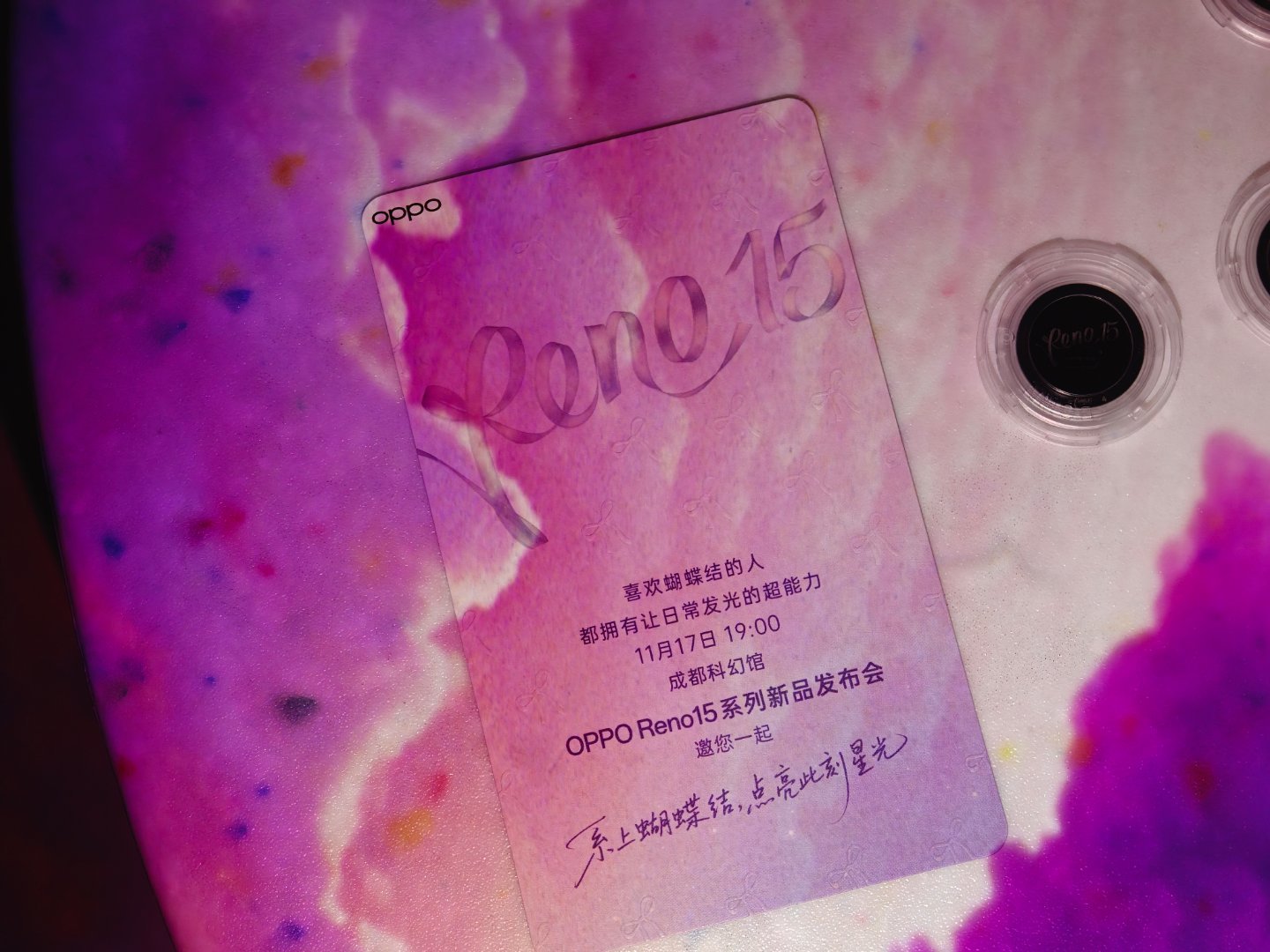 这次宋雨琦新款OPPOReno15 带来了新配色「星光蝴蝶结」🎀,而邀请函是一个星空投影仪,包装上也是满满的蝴蝶结,与主题“系上蝴蝶结,点亮此刻星光”呼应的很好[666]