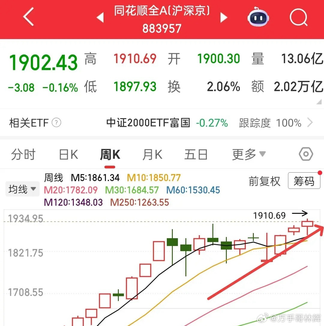 全A从周线来看,下周依旧会是一根阳线,当然它不会每天都会涨,很可能它的走势就是周一涨,周二跌,下周会出现一次普跌的机会!