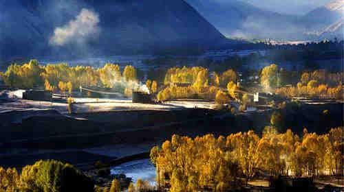 11月的长溪村,俨然一幅五颜六色的油画! 山间飘渺着朦胧晨雾,黄