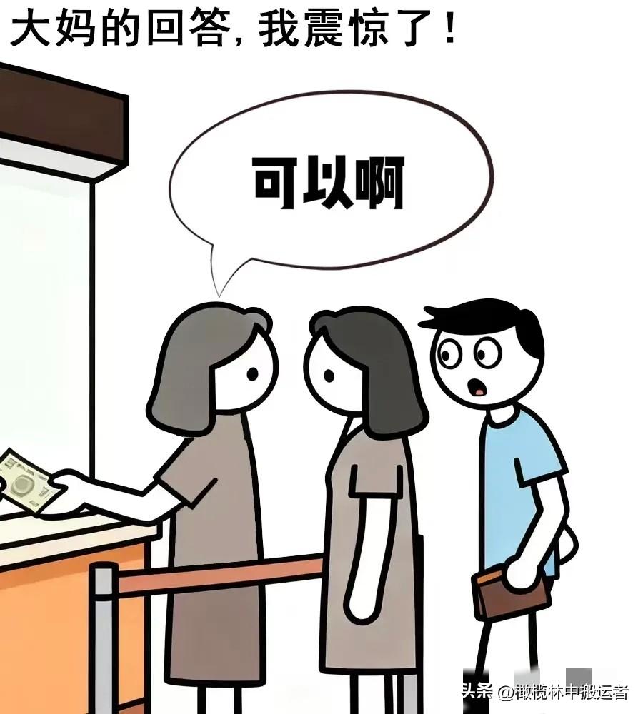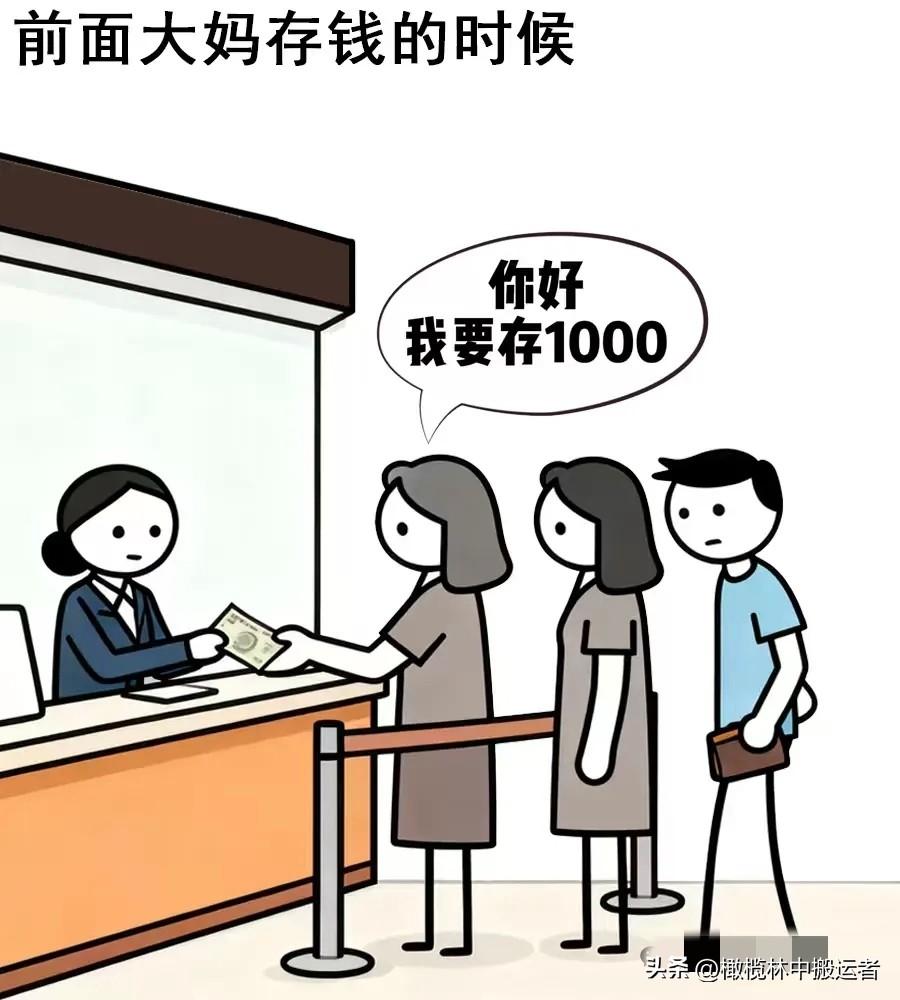 趣味漫画:今天我去银行存钱,前面大妈:你好,我要存1000,后面大妈:我正好要取